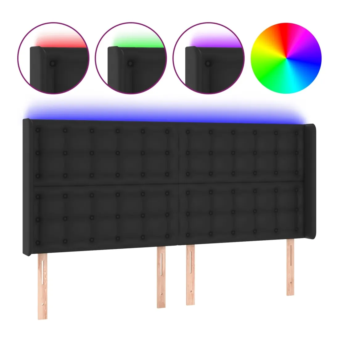 Cette tête de lit à LED classique, au design élégant, donne à votre cadre de lit une touche de modernité étonnante et convient parfaitement à toute chambre à coucher. Similicuir durable : le similicuir de qualité supérieure est un matériau très durable. Il est résistant aux taches, ce qui le rend facile à nettoyer avec un chiffon humide. La surface lisse donne également un aspect luxueux et la beauté du cuir véritable. LED colorée : apportez de l'éclairage dans l'obscurité avec des lumières LED colorées ! Hauteur réglable : la tête de lit est réglable en hauteur selon vos préférences. Excellent soutien : la tête de lit vous offre un excellent soutien du dos lorsque vous êtes assis dans votre lit pour lire ou regarder la télévision. Bande à LED découpable : cette bande à LED flexible pe