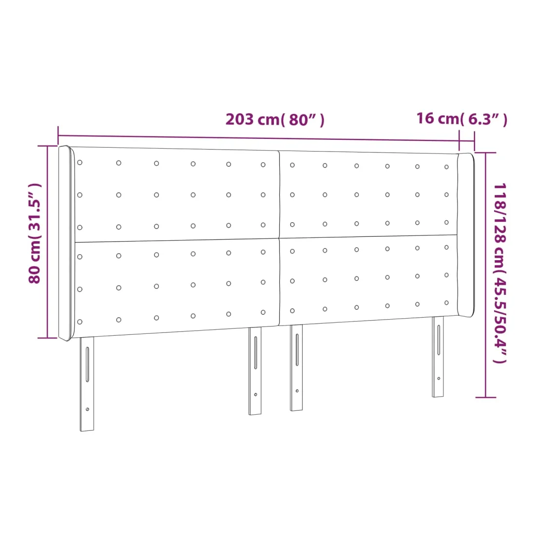 203 x 16 x 118/128 cm