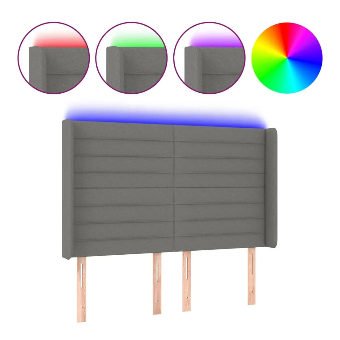 Tête de lit à LED Gris foncé 147x16x118/128 cm Tissu