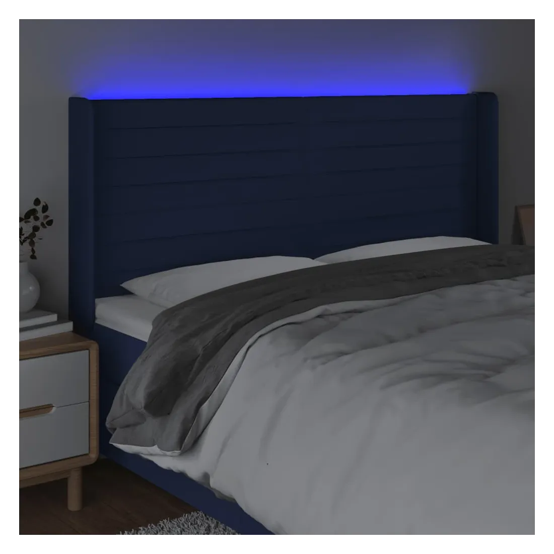 Tête de lit à LED Bleu 163x16x118/128 cm Tissu