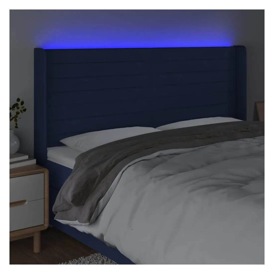 Tête de lit à LED Bleu 183x16x118/128 cm Tissu