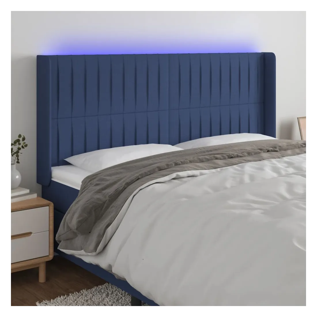 Tête de lit à LED Bleu 203x16x118/128 cm Tissu