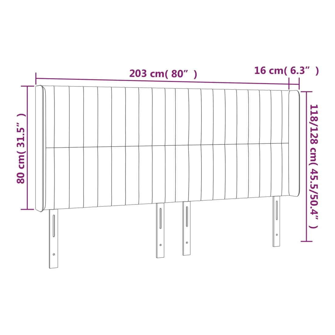 203 x 16 x 118/128 cm