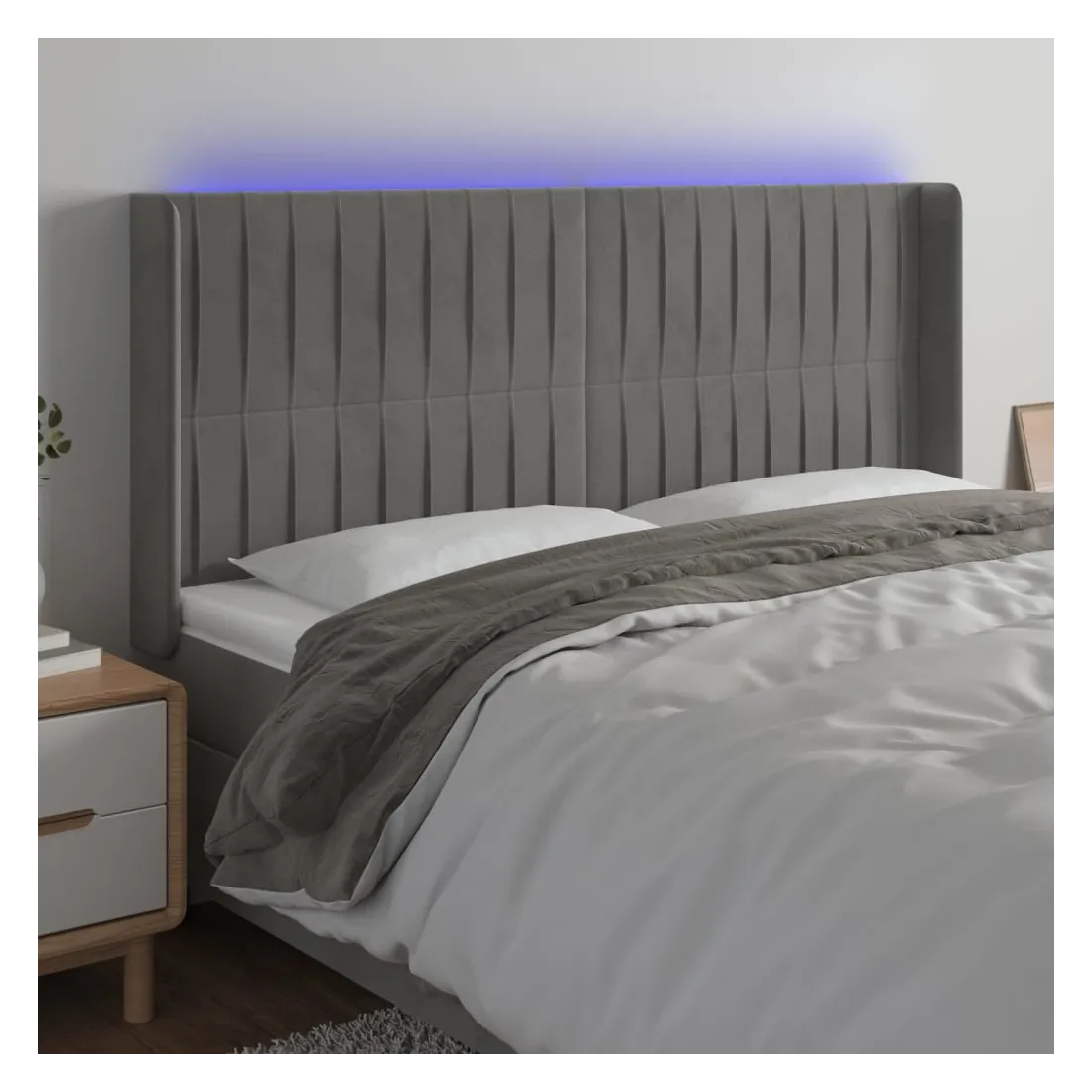 Tête de lit à LED Gris clair 203x16x118/128 cm Velours