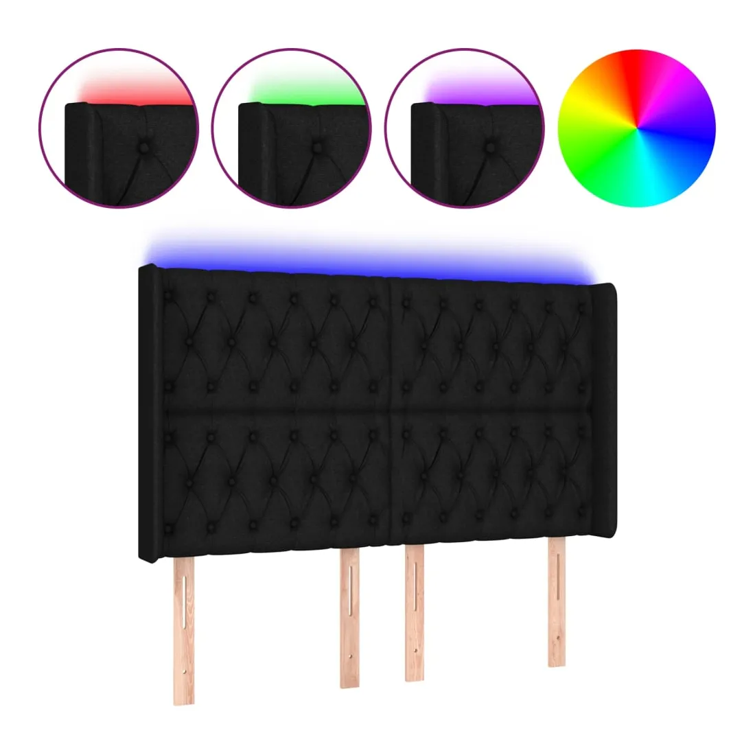 Tête de lit à LED Noir 163x16x118/128 cm Tissu