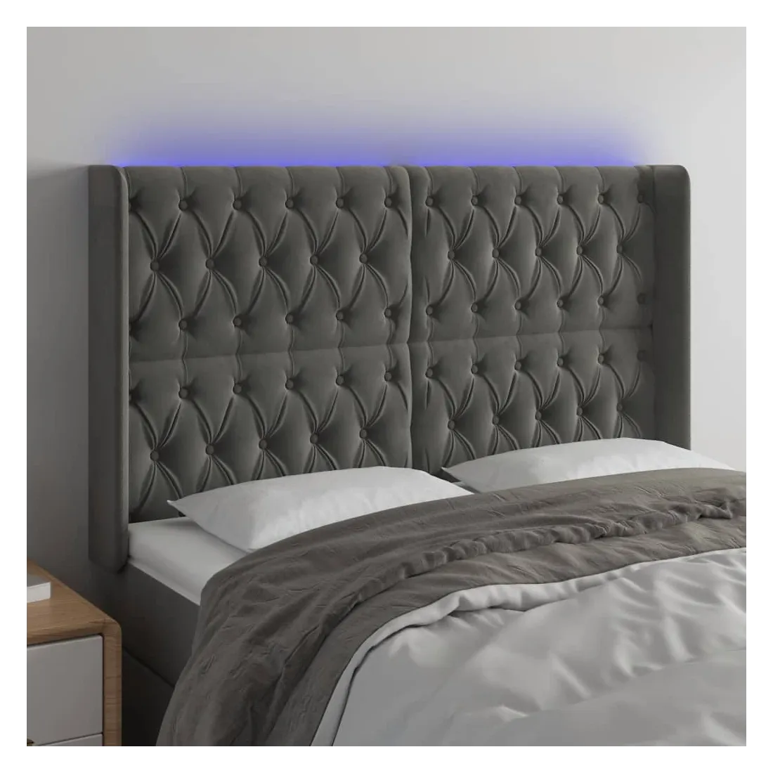 Tête de lit à LED Gris foncé 147x16x118/128 cm Velours