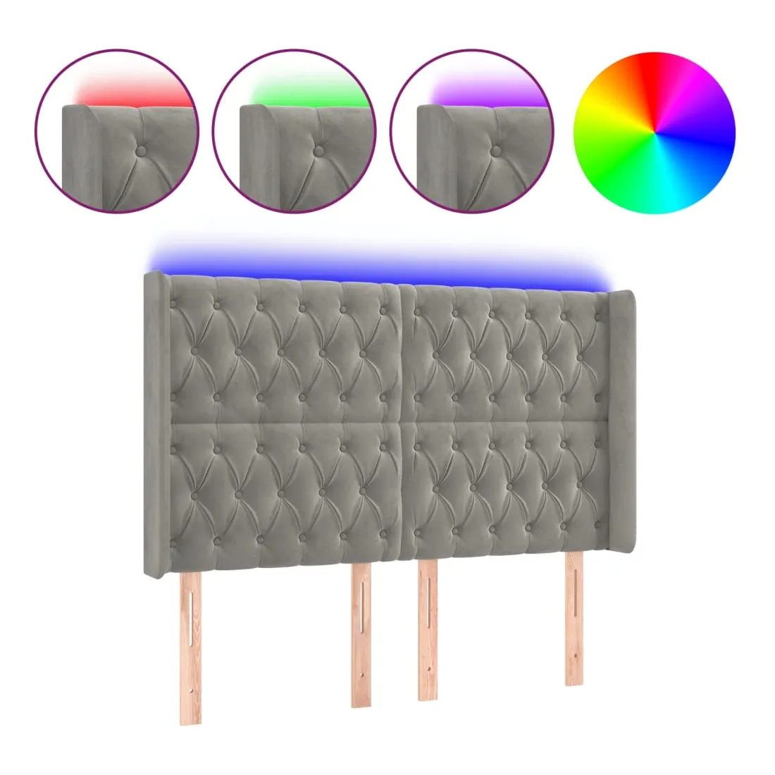 Tête de lit à LED Gris clair 163x16x118/128 cm Velours