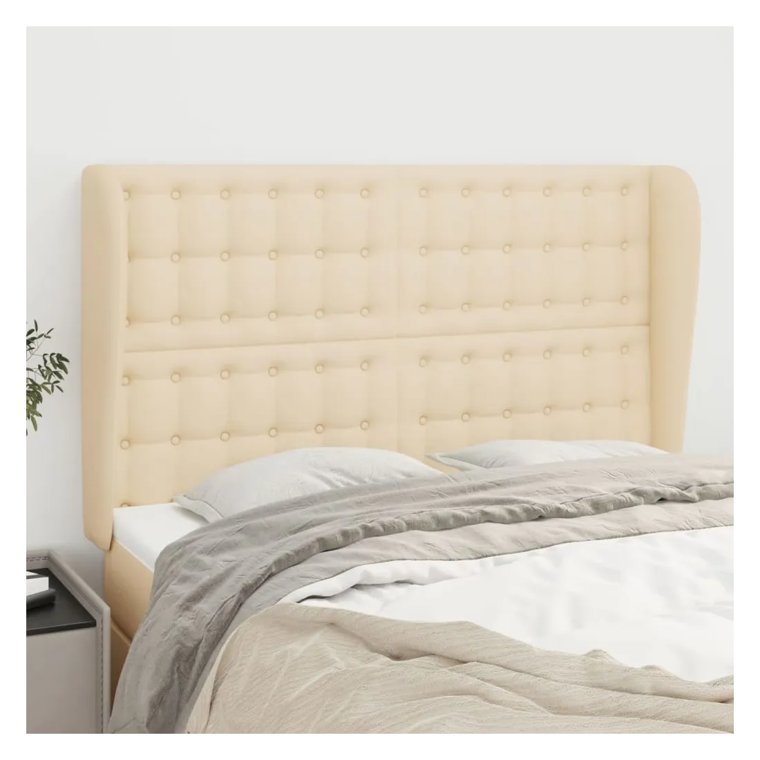 Cette tête de lit avec oreilles classique au design élégant donne à votre cadre de lit un aspect complet et convient à toute chambre à coucher. Tissu durable : le tissu présente un aspect simple et épuré, et il est respirant et durable.Pieds robustes et stables : les pieds en bois assurent la robustesse et la stabilité.Hauteur réglable : la tête de lit est réglable en hauteur selon vos préférences.Excellent soutien : la tête de lit vous offre un excellent soutien du dos lorsque vous êtes assis dans votre lit pour lire ou regarder la télévision. Remarque :La livraison comprend uniquement la tête de lit. Le cadre de lit et le matelas ne sont pas inclus. Vous pouvez consulter notre boutique pour les cadres et matelas assortis.Chaque produit est livré avec un manuel de montage dans la boîte pour un montage facile.