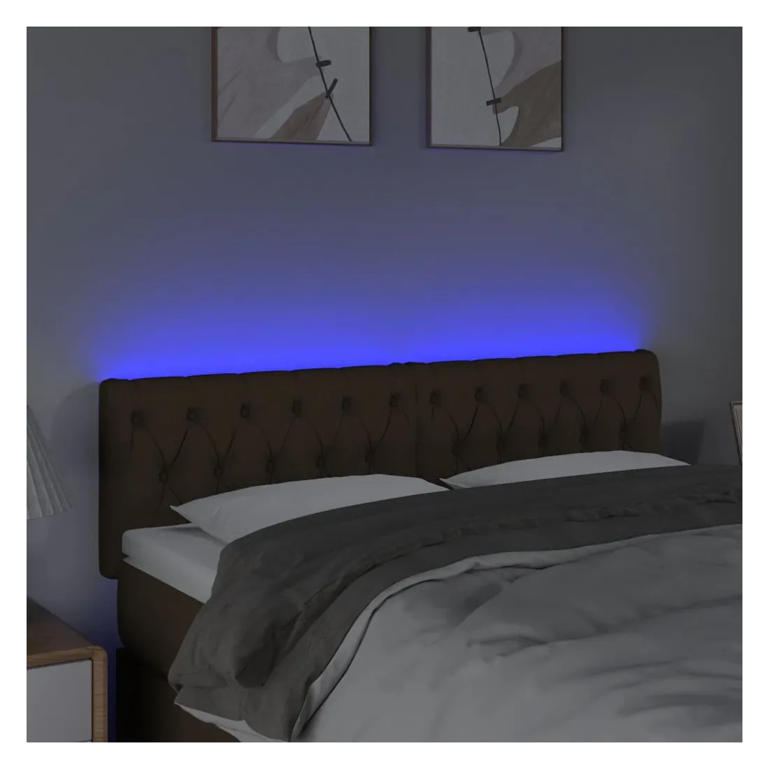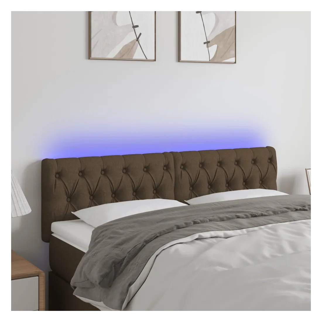 Cette tête de lit à LED classique, au design élégant, donne à votre cadre de lit une touche de modernité étonnante et convient parfaitement à toute chambre à coucher. Tissu durable : le tissu présente un aspect simple et épuré, et il est respirant et durable.LED colorée : apportez de l'éclairage dans l'obscurité avec des lumières LED colorées !Hauteur réglable : la tête de lit est réglable en hauteur selon vos préférences.Excellent soutien : la tête de lit vous offre un excellent soutien du dos lorsque vous êtes assis dans votre lit pour lire ou regarder la télévision.Bande à LED découpable : cette bande à LED flexible peut être ajustée en longueur. Le symbole des ciseaux indique où la bande peut être coupée en toute sécurité sans l'endommager. Remarque :Seule la partie avec un symbole de ciseaux peut être coupée et seule la partie avec l'USB continuera à fonctionner comme avant.Chaque produit est livré avec un manuel de montage dans la boîte pour un montage facile.Ce produit est doté d'un connecteur USB, mais la source d'alimentation certifiée de USB 5V n'est pas incluse.