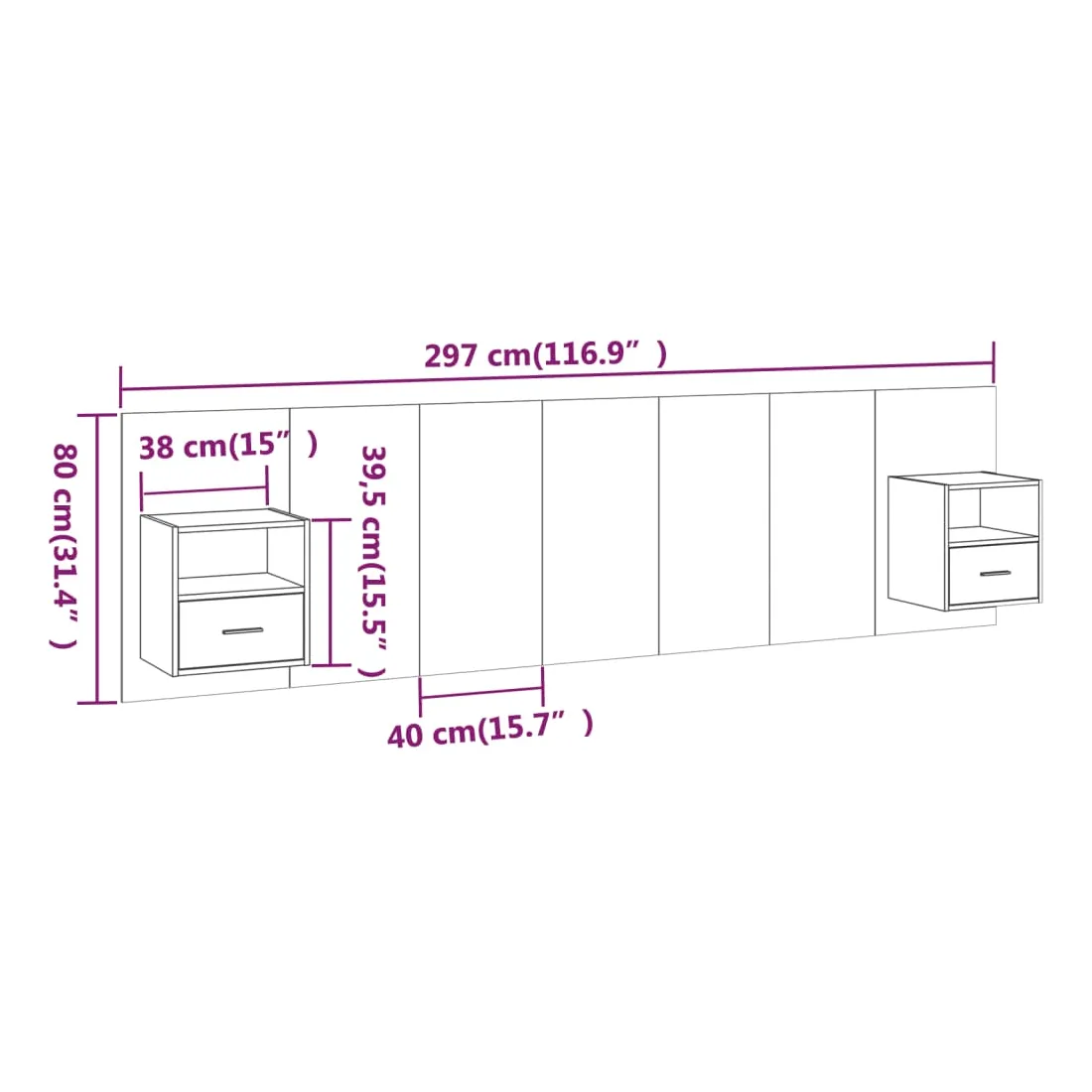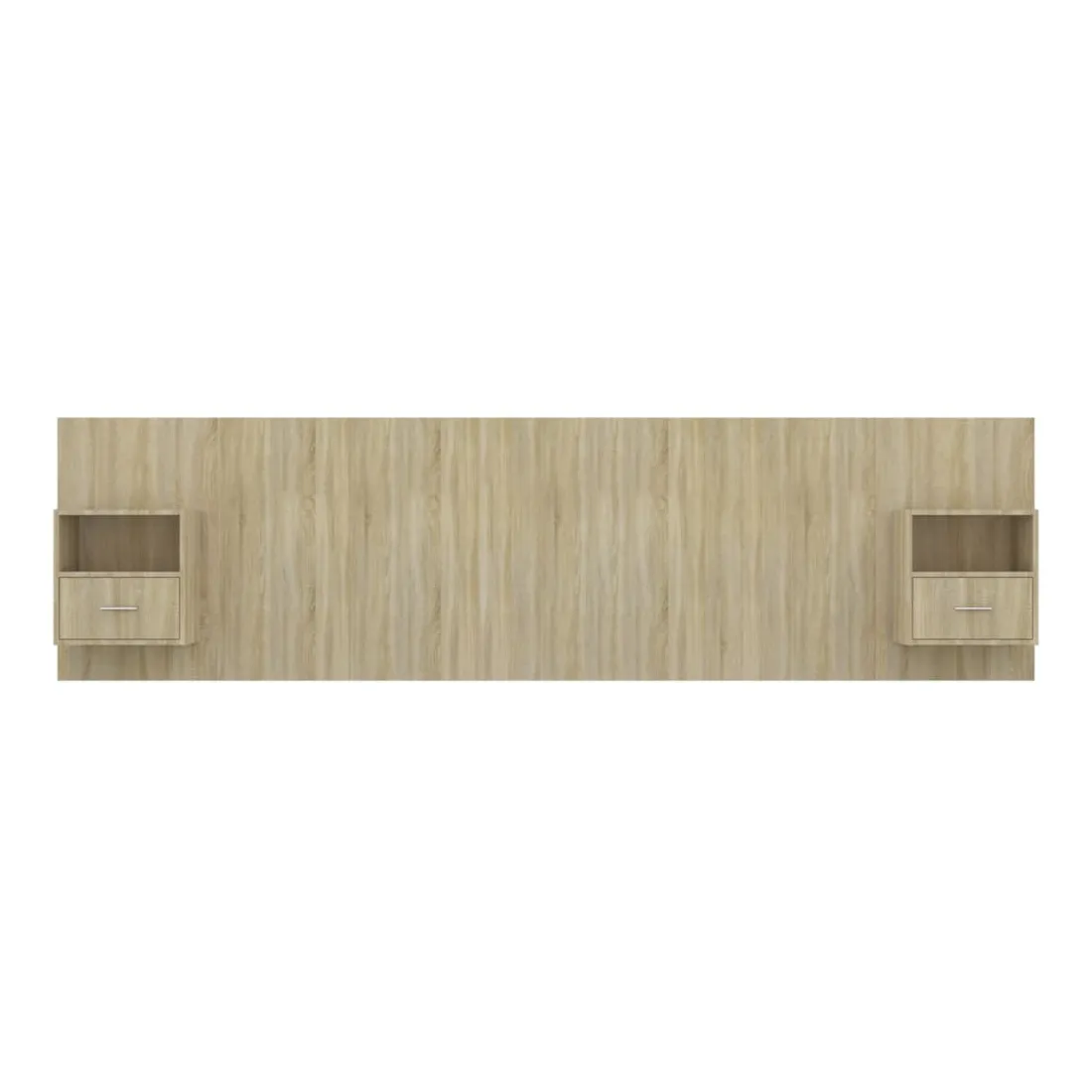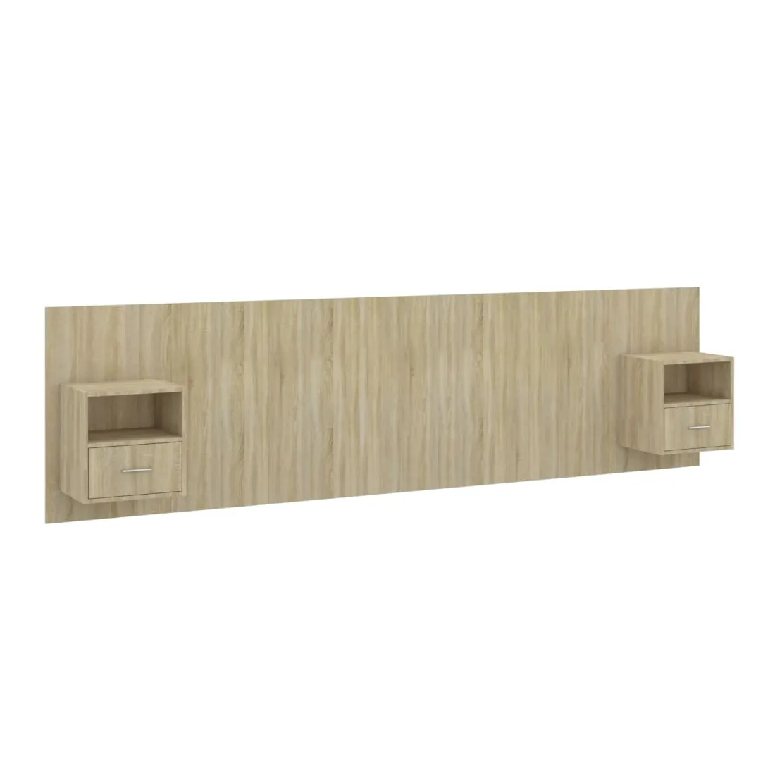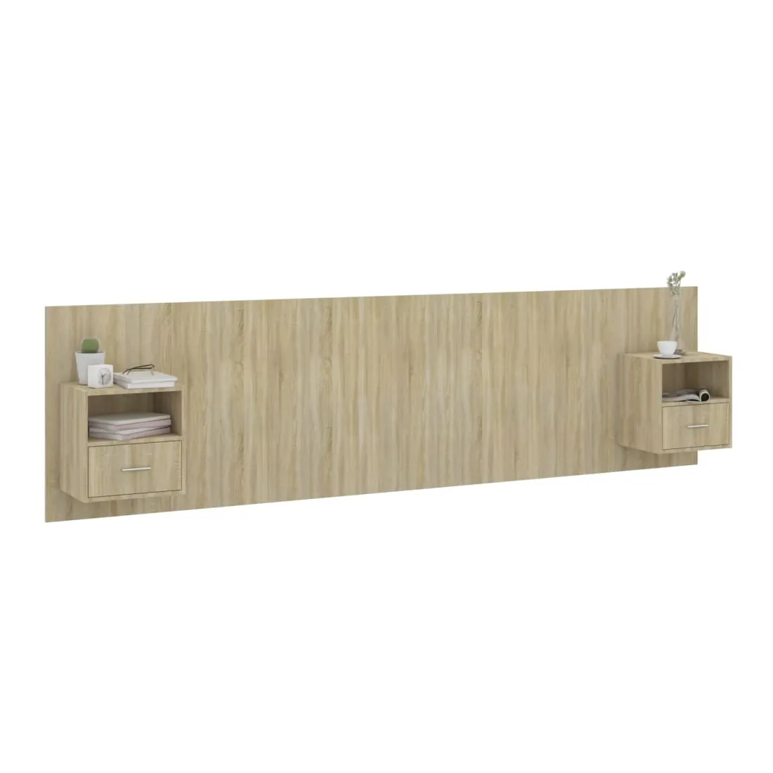 La tête de lit robuste avec armoires, au design classique, donne à votre cadre de lit un aspect complet et convient à toute chambre à coucher. Matériau robuste : le bois d'ingénierie est d'une qualité exceptionnelle avec une surface lisse et présente également résistance, stabilité et résistance à l'humidité.Design mural : les tables de chevet flottantes et la tête de lit peuvent être fixées au mur. De cette façon, vous pouvez maximiser votre espace au sol et garder la zone propre.Espace de rangement : l'unité de chevet dispose d'un espace de rangement spacieux qui vous permet de garder vos affaires organisées. ATTENTION :Les vis et les chevilles pour l'intérieur du mur ne sont pas incluses. Recherchez et utilisez des vis et des chevilles adaptées à vos murs. Si vous n'êtes pas sûr, demandez conseil à un professionnel. Lisez et suivez attentivement chaque étape des instructions.
