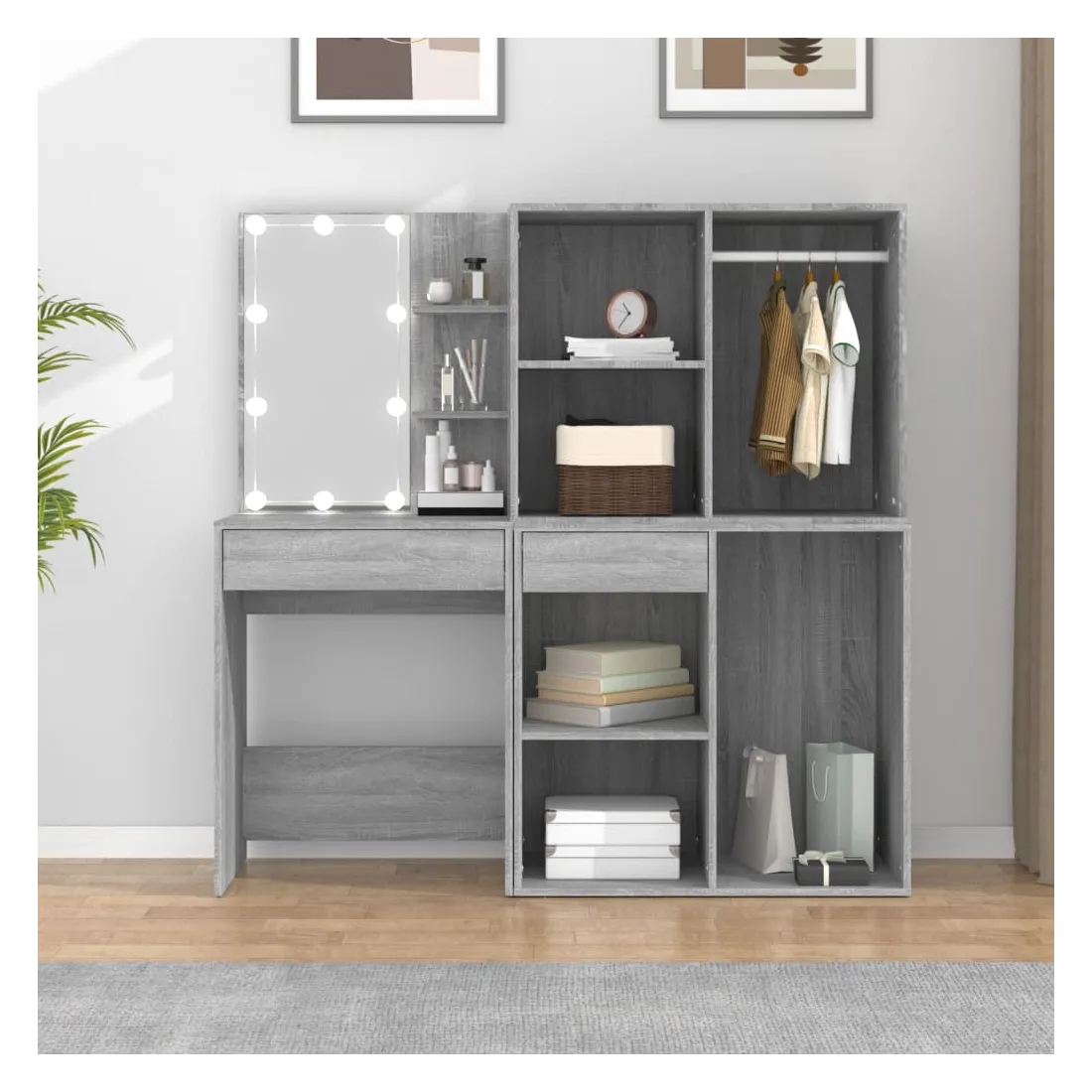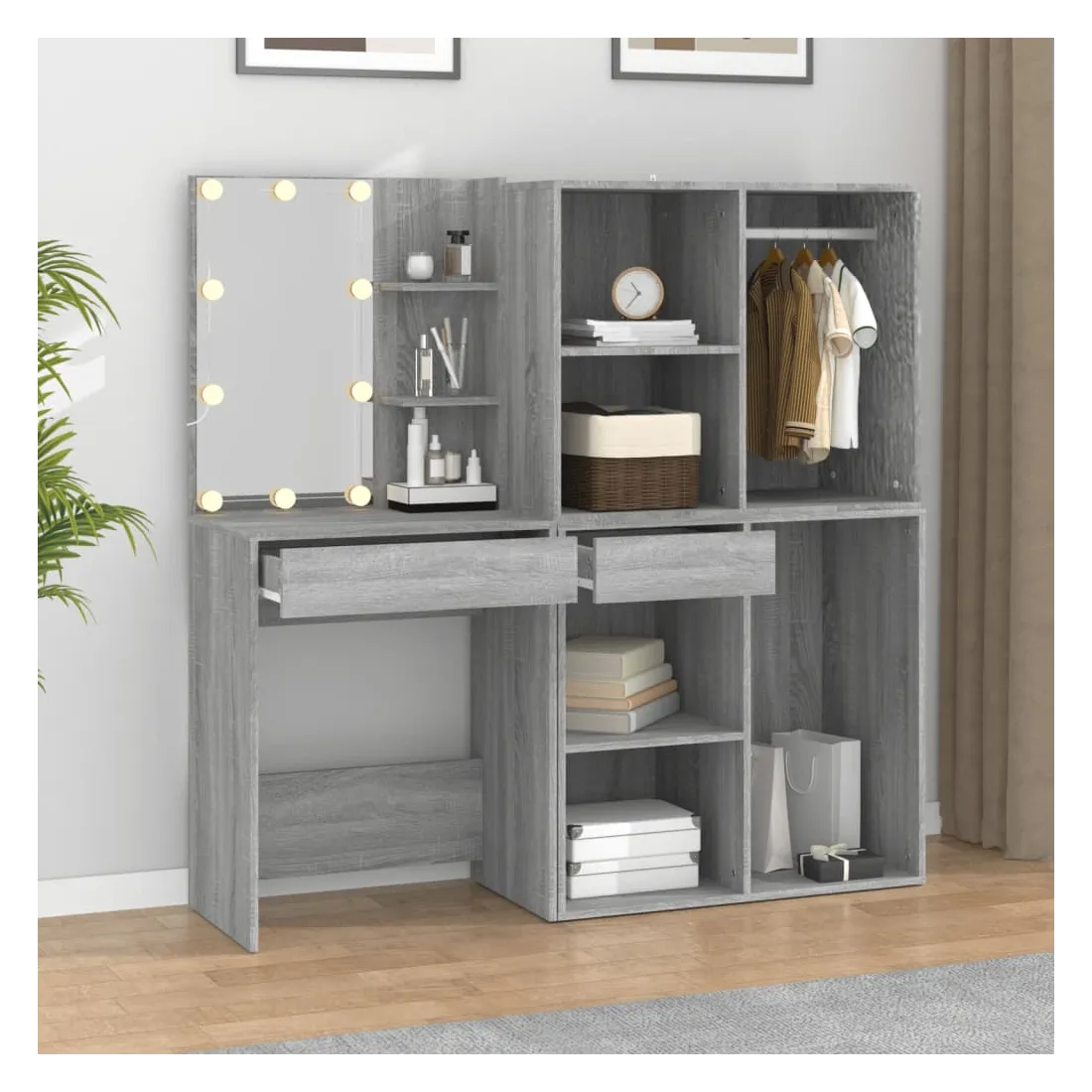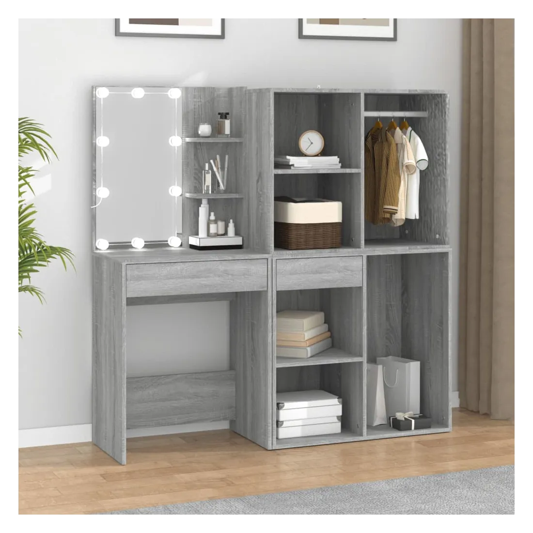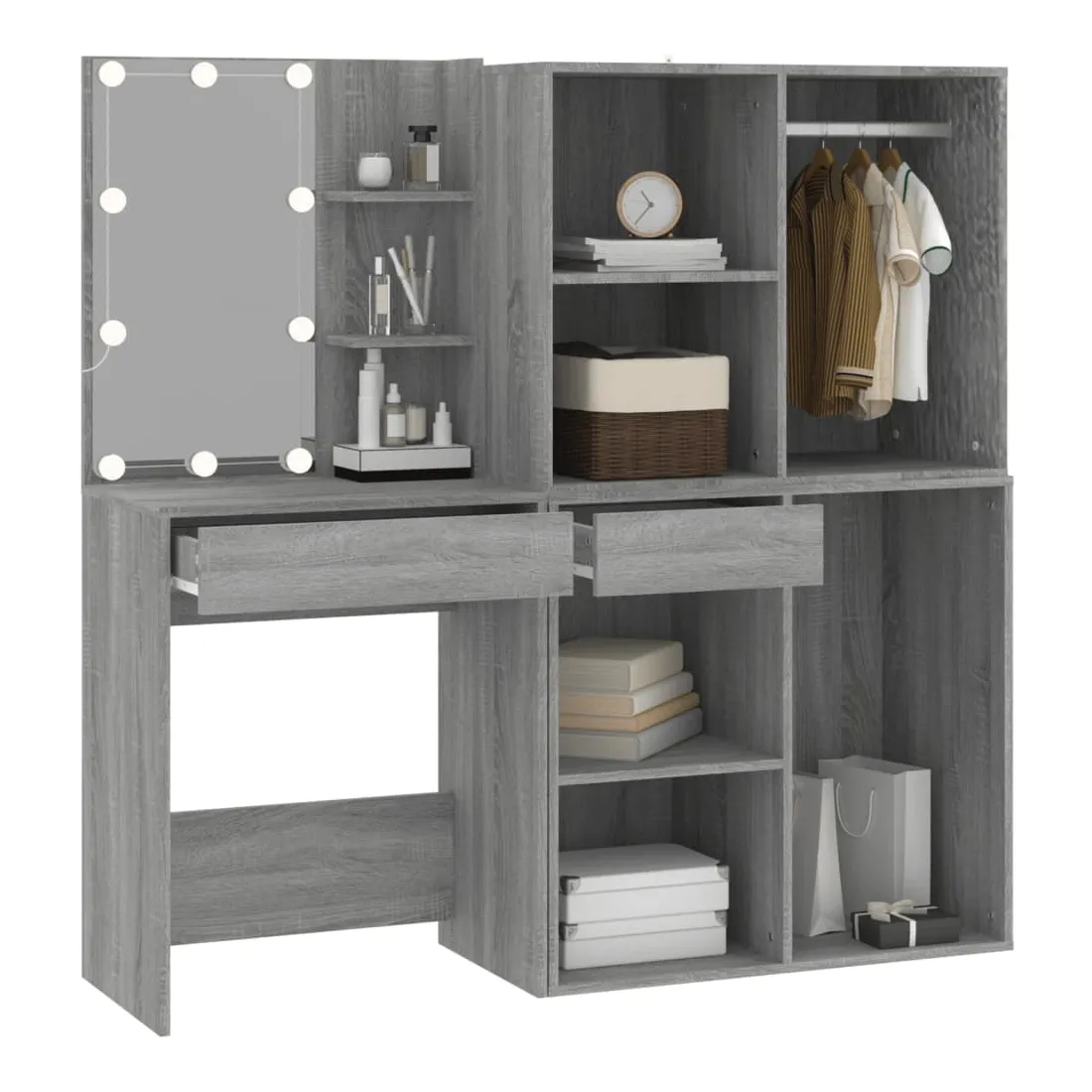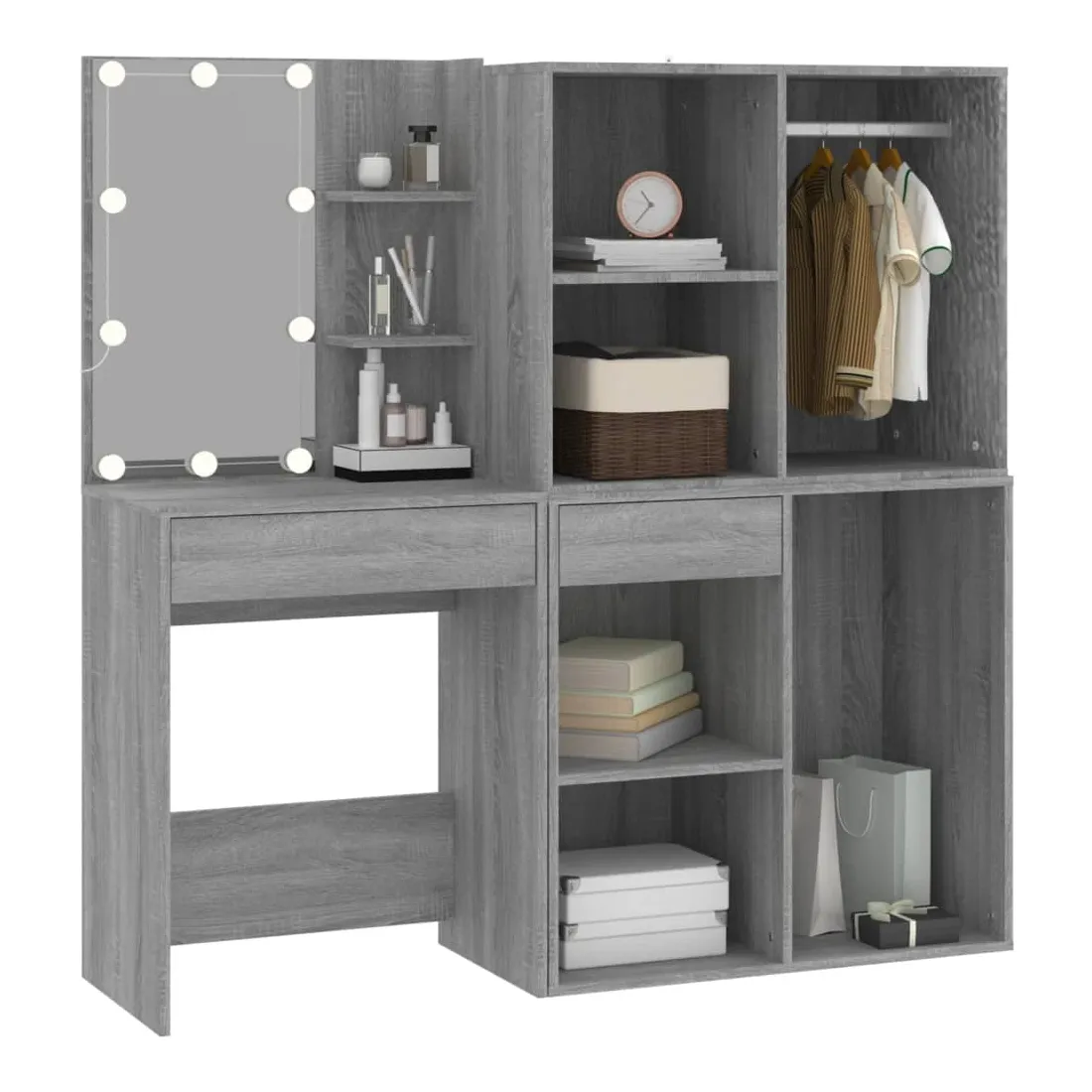 Coiffeuse à LED avec armoires Sonoma gris Bois d'ingénierie