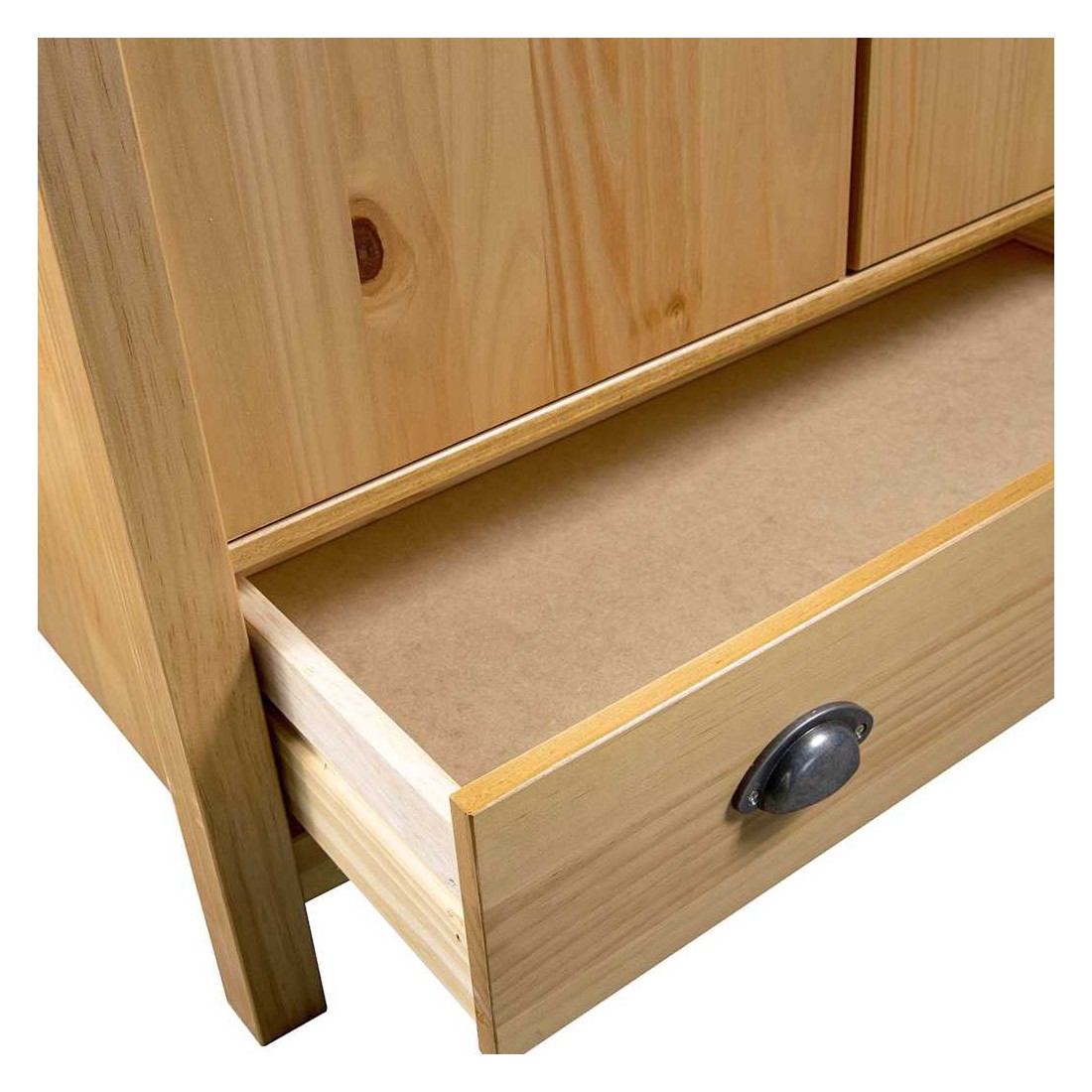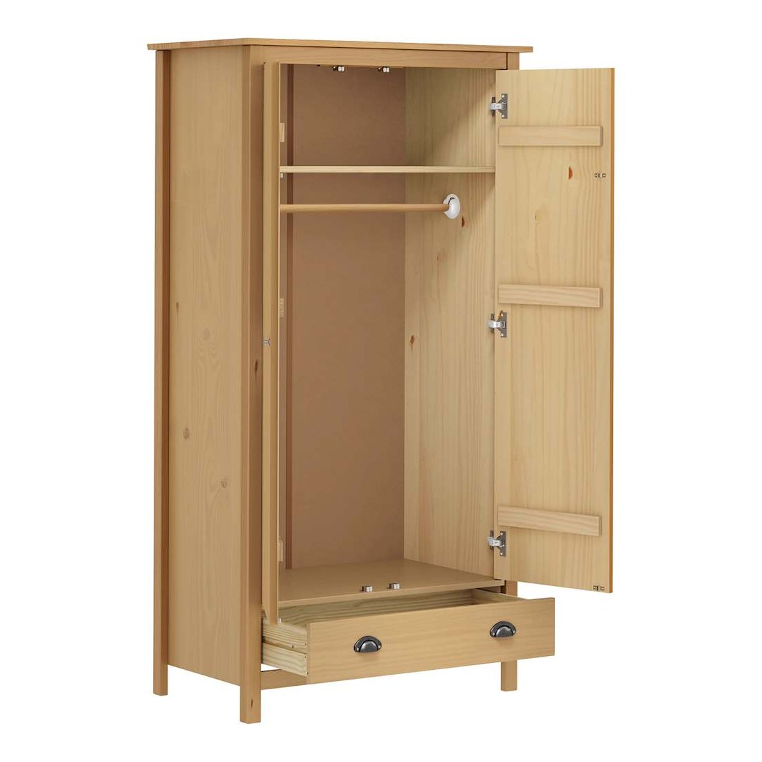 La garde-robe moderne est conçue pour être un supplément intemporel à votre décoration intérieure. La garde-robe, en pin massif, est très solide. L'armoire à vêtements dispose d'un tiroir et d'une étagère, ce qui permet de garder les petits objets organisés et à portée de main. Elle dispose d'un grand compartiment équipé d'une penderie permettant d'accrocher des trenchs, des robes, etc. L'armoire est facile à assembler. L'armoire de chambre est également facile à nettoyer avec un chiffon sec.