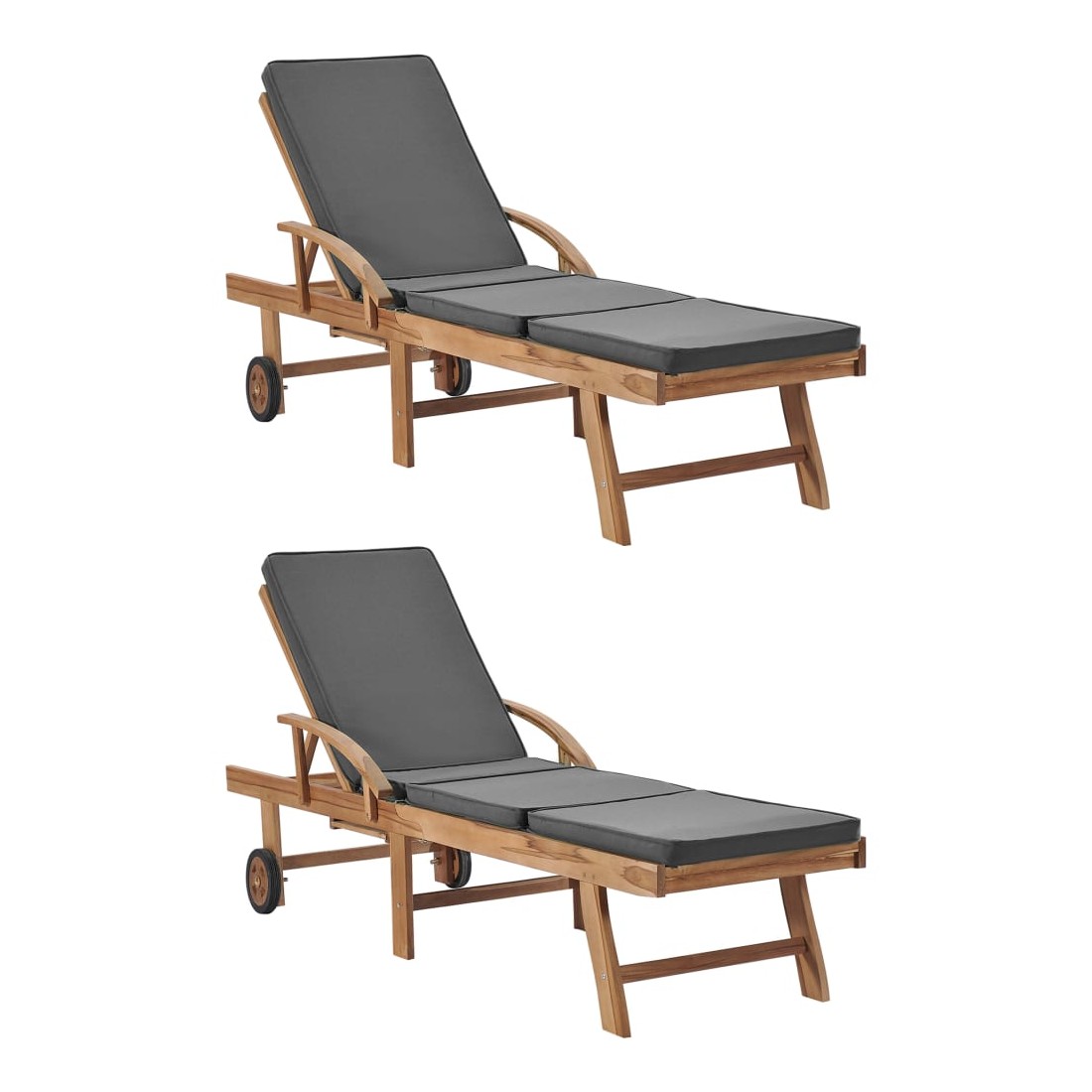 Chaises longues et coussins 2pcs Bois de teck solide Gris foncé