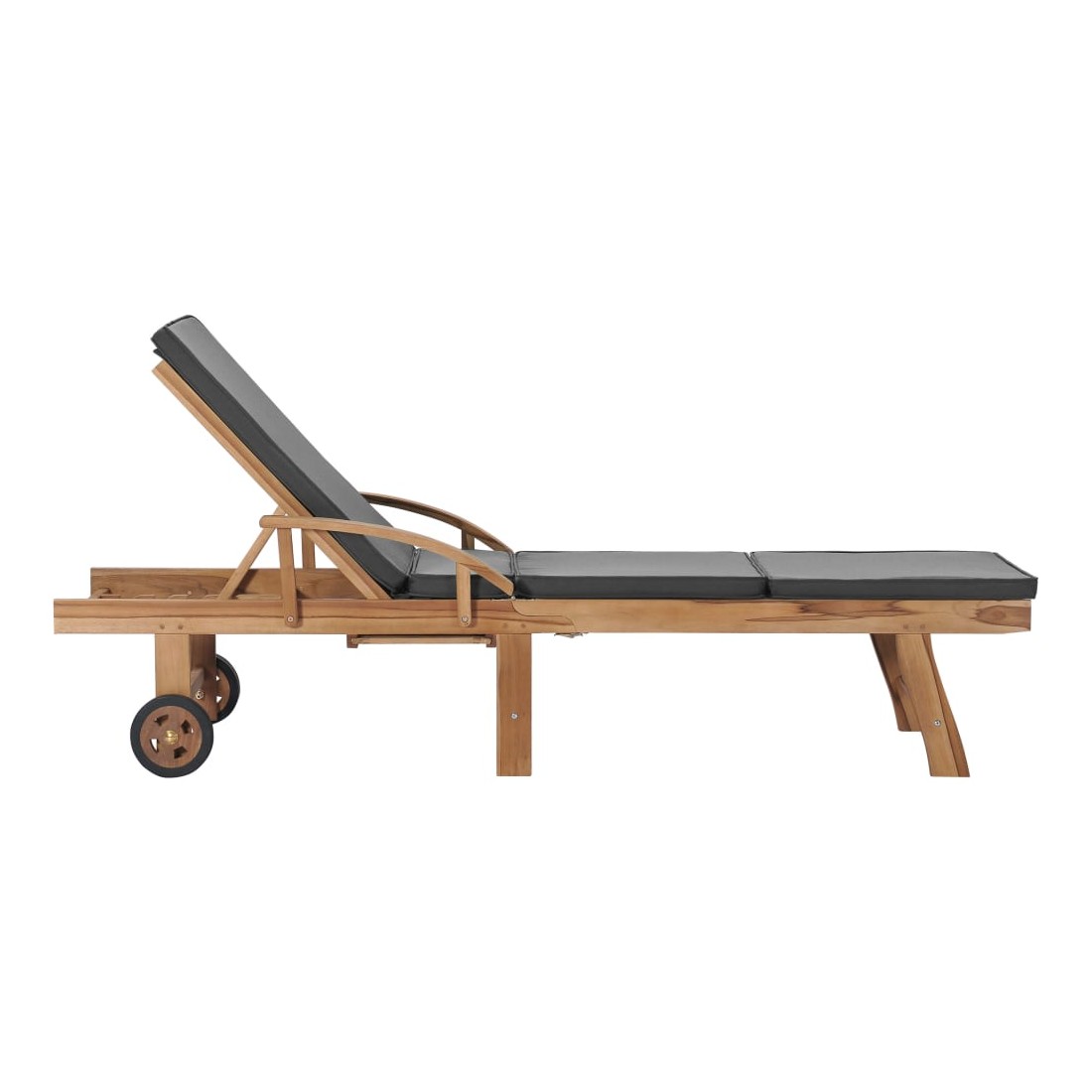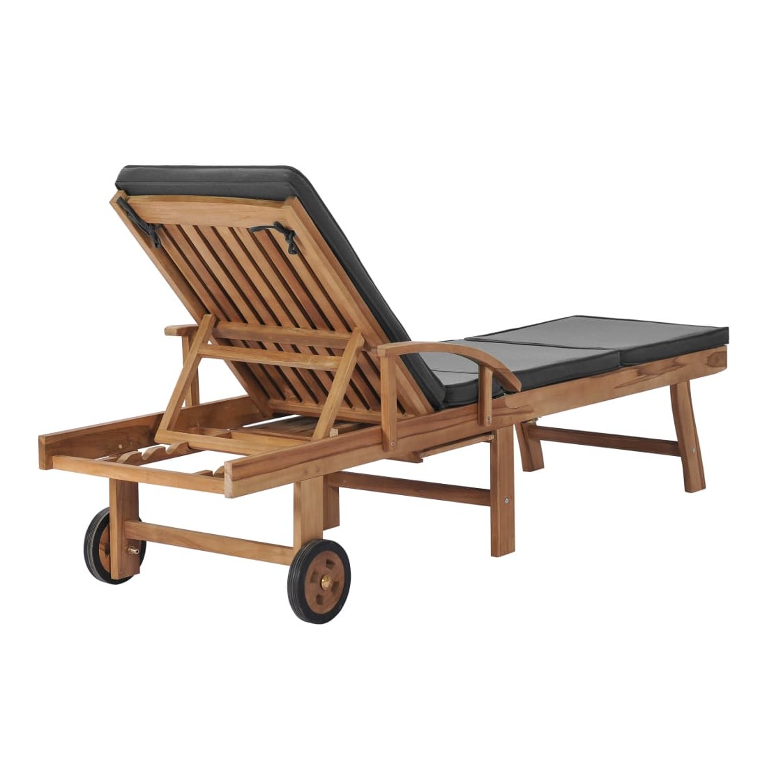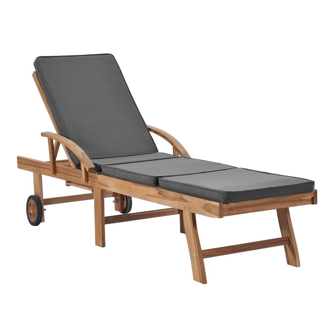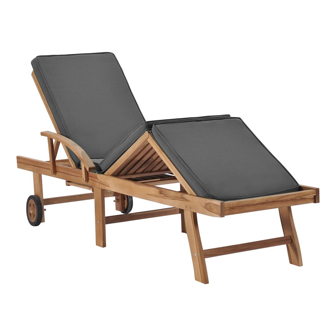 vidaXLCes 2 chaises longues en bois de teck ont une conception attrayante et ajouteront une touche de charme rustique à votre jardin, terrasse ou autre espace extérieur. Fabriquée en bois dur de teck extrêmement durable, cette pièce de meuble en teck a été chevronnée, séchée au four puis finement poncée pour lui donner un aspect très lisse. Le bois de teck est connu pour sa résistance exceptionnelle aux intempéries, ce qui le rend bien plus adapté aux meubles de jardin que tout autre type de bois. Le bois de teck est le choix idéal si vous souhaitez acheter une pièce de meubles de jardin durable. Les produits sont appliqués avec une belle finition pour donner au bois une couleur chaude. Les chaises longues sont équipées de 2 roulettes pour pouvoir les déplacer facilement. Les coussins inclus rendent les transats encore plus confortables. Ils disposent des tables coulissantes pratiques sur lesquelles vous pouvez garder votre téléphone, vos lunettes de soleil, vos boissons et autres petits objets à portée de main. Leurs dossiers peuvent être ajustés dans 3 positions, de la verticale à l'horizontale. Les repose-pieds sont également réglables. Détendez-vous et profitez du soleil sur ces chaises longues confortables !