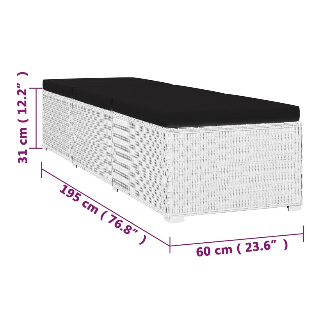 - Dimensions de la chaise longue : 195 x 60 x 31 cm (L x l x H)