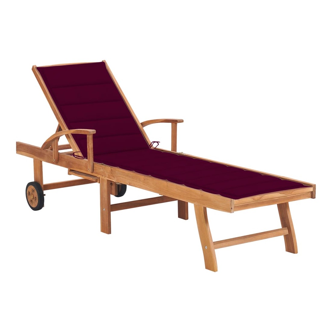 Cette chaise longue classique en bois avec un design à lattes attrayant, ajoute une touche de charme rustique à votre jardin, patio, terrasse de la piscine ou tout espace extérieur. Fabriquée en bois dur de teck extrêmement durable, cette pièce de meuble en teck a été chevronnée, séchée au four puis finement poncée pour lui donner un aspect très lisse. Le bois de teck est connu pour sa résistance exceptionnelle aux intempéries, ce qui le rend bien plus adapté aux meubles de jardin que tout autre type de bois. Le bois de teck est le choix idéal si vous souhaitez acheter une pièce de meubles de jardin durable. Le lit de repos est équipé de 2 roues, pour le déplacer facilement. Le dossier peut être ajusté dans 4 positions, de la position assise entièrement droite à la position complètement à plat. Les lattes du siège et du dossier offrent également un excellent soutien et un grand confort et deux accoudoirs offrent un endroit pour reposer vos bras. De plus, le coussin inclus est plus qu'un supplément pratique ; il a également une fonction décorative. Remarque : afin de prolonger la durée de vie des meubles d'extérieur, nous vous recommandons de les protéger avec une housse imperméable.