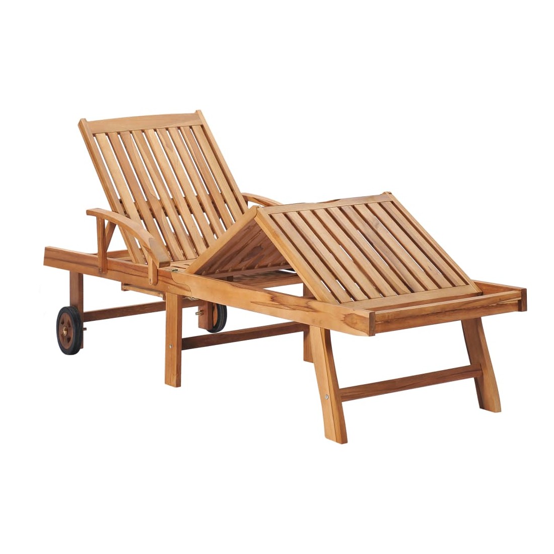 vidaXLchaise longue, chaises longues, chaise longue en bois, chaises longues en bois, lit de salon, lits de salon, transat, transats, lit de repos, lits de repos, lit de repos d'extérieur, lits de repos d'extérieur Fabriquée en bois dur de teck extrêmement durable, cette pièce de meuble en teck a été chevronnée, séchée au four puis finement poncée pour lui donner un aspect très lisse. Le bois de teck est connu pour sa résistance exceptionnelle aux intempéries, ce qui le rend bien plus adapté aux meubles de jardin que tout autre type de bois. Le bois de teck est le choix idéal si vous souhaitez acheter une pièce de meubles de jardin durable. Le lit de repos est équipé de 2 roues, pour le déplacer facilement. Le dossier peut être ajusté dans 4 positions, de la position assise entièrement droite à la position complètement à plat. Les lattes du siège et du dossier offrent également un excellent soutien et un grand confort et deux accoudoirs offrent un endroit pour reposer vos bras. De plus, le coussin inclus est plus qu'un supplément pratique ; il a également une fonction décorative. Remarque : afin de prolonger la durée de vie des meubles d'extérieur, nous vous recommandons de les protéger avec une housse imperméable.