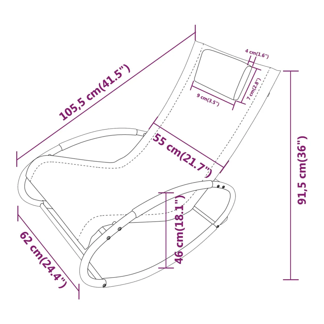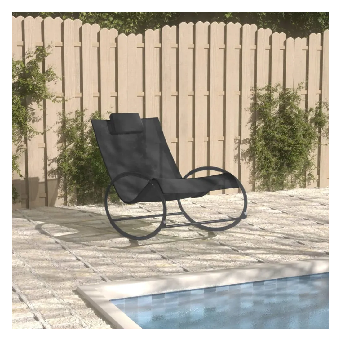 Cette chaise longue tendance est un choix idéal pour passer un après-midi de détente dans le jardin, sur le patio ou au bord de la piscine. Le cadre en acier rend la chaise longue de jardin robuste et stable. Grâce au tissu textilène résistant à l'eau et respirant, la chaise longue est résistante à l'usure, facile à entretenir et adaptée à une utilisation quotidienne à l'extérieur. La chaise à bascule, au design ergonomique, offre un confort d'assise optimal grâce à un dossier et des accoudoirs incurvés. De plus, l'appui-tête amovible offre un excellent soutien pour votre tête et votre cou. Remarque : afin de prolonger la durée de vie des meubles d'extérieur, nous vous recommandons de les protéger avec une housse imperméable.
