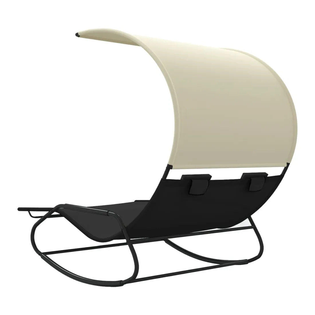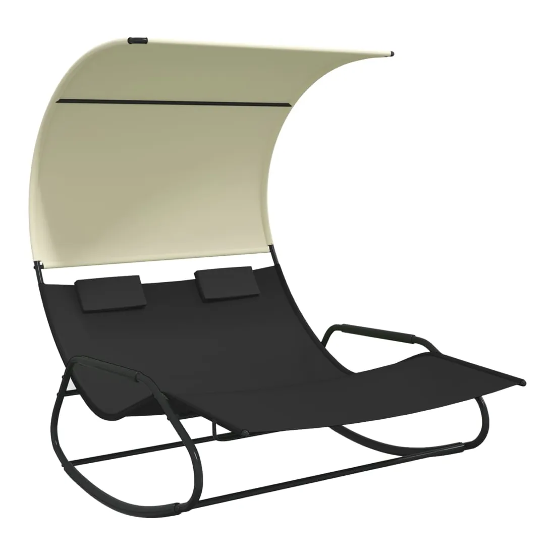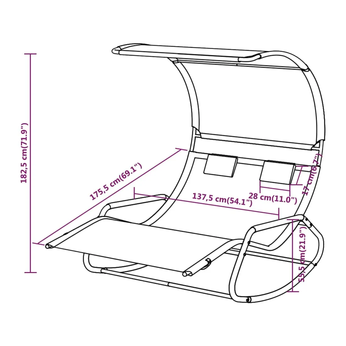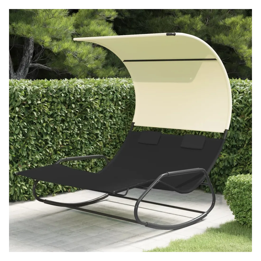 Cette chaise longue double à bascule allie style et fonctionnalité, ce qui la rend idéale pour vous détendre au bord de la piscine, sur le balcon, le patio ou dans le jardin pendant vos vacances ou vos loisirs. Cadre robuste : la chaise longue double présente un cadre en acier enduit de poudre qui assure robustesse et stabilité.Matériau de siège durable : la zone de couchage est fabriquée en tissu en textilène, résistant à l'eau, respirant et adapté à une utilisation à l'extérieur.Matériau de l'auvent solide : l'auvent est fabriqué en polyester. Le polyester est un matériau synthétique connu pour sa haute protection contre les UV et sa résistance à la traction. Le polyester est résistant à l'eau, ce qui en fait le choix idéal pour les conditions humides ou pluvieuses, et il est facile à nettoyer.Oreillers confortables : les oreillers amovibles offrent un excellent soutien pour votre tête et votre nuque, ce qui vous apporte un confort supplémentaire.Design à bascule : vous pouvez vous détendre en vous asseyant confortablement tout en profitant d'un mouvement de bascule apaisant et doux. Remarque :Afin de prolonger la durée de vie de votre mobilier d'extérieur, nous vous recommandons de le protéger avec une housse imperméable.