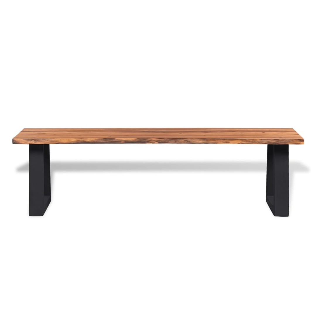 Ce banc de haute qualité a un style industriel attrayant et fera un excellent accessoire pour votre salon, hall ou bar. Le banc est très robuste et durable. Le dessus du banc est fait de bois d'acacia massif, ce qui est très durable. La bordure assortie du bois qui suit la forme naturelle de l'arbre augmente la beauté du banc. Les pieds métalliques uniques, en forme de U, recouverts d'un revêtement en poudre, ajoutent au style industriel et rendent le banc très stable. L'assemblage est facile. Veuillez noter que le bois est un produit naturel et peut présenter des imperfections.