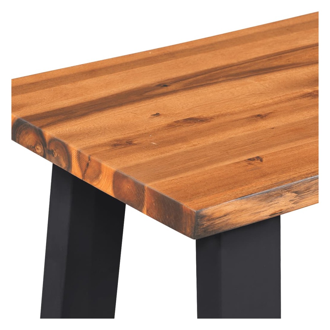 - Matériau : Bois d'acacia massif avec finition huileuse (dessus de banc) + métal enrobé (pieds)