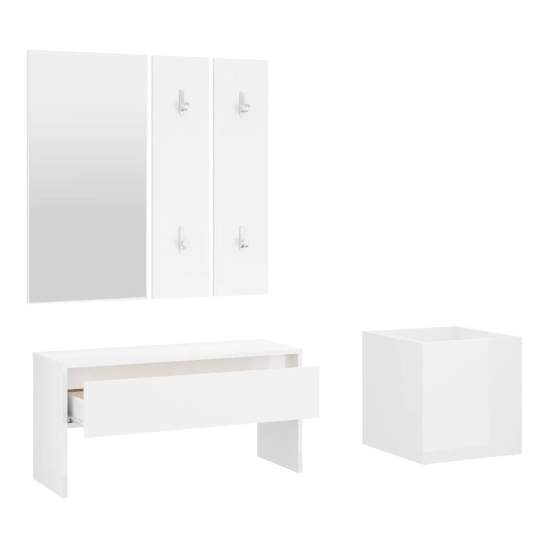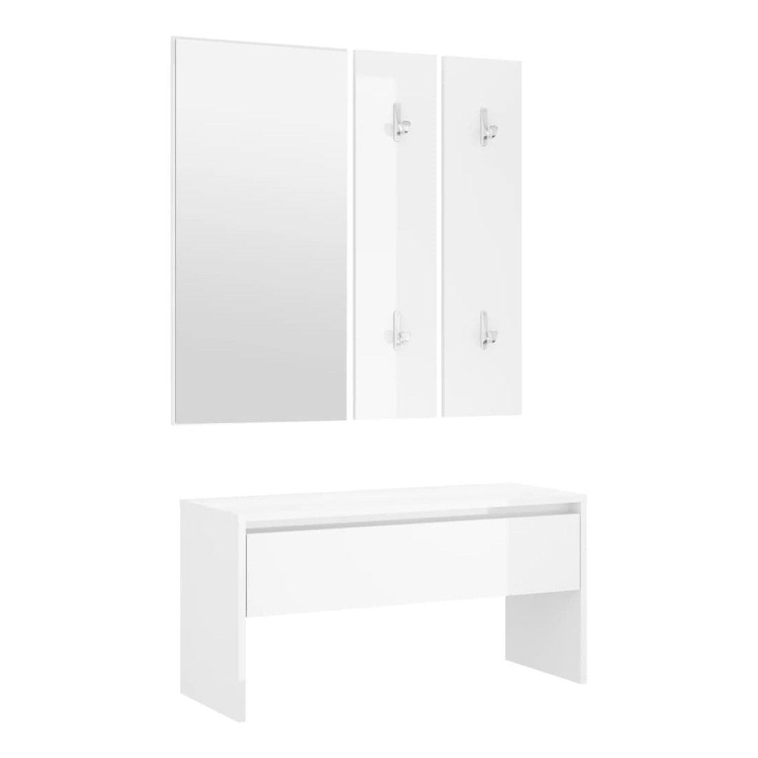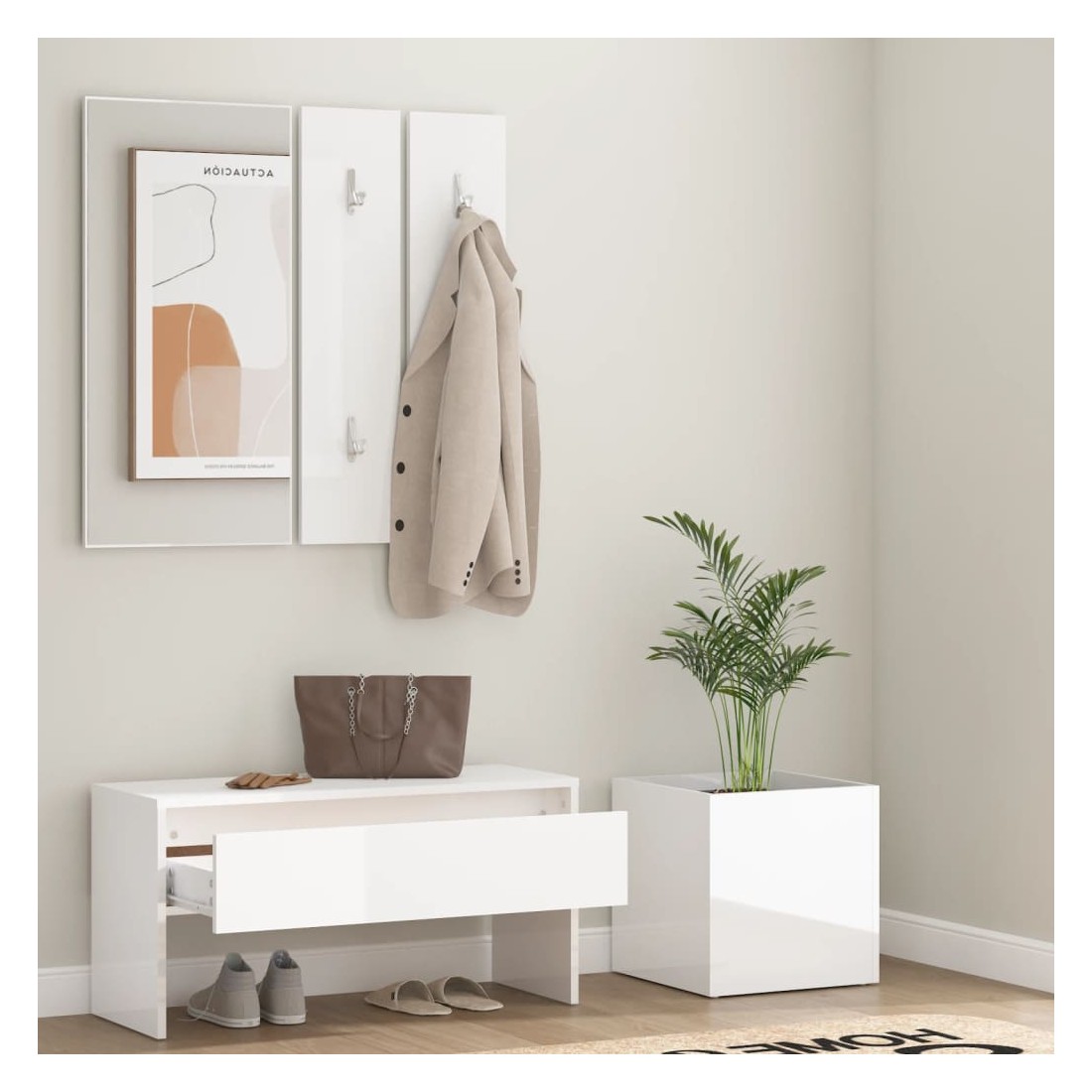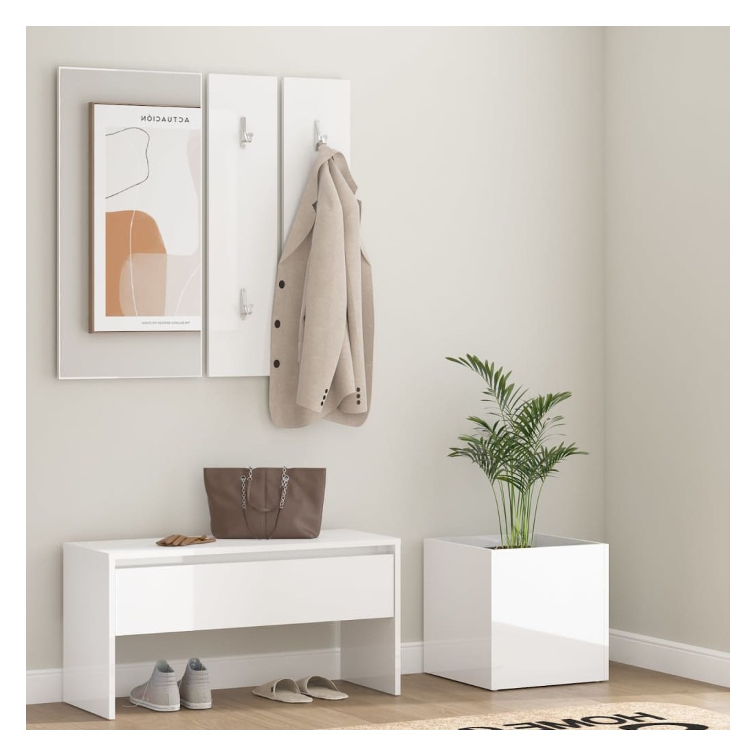 Créez un environnement chaleureux et accueillant juste à côté de votre porte avec cet ensemble de meubles de couloir ! Matériau robuste : le bois d'ingénierie est d'une qualité exceptionnelle avec une surface lisse et présente également résistance, stabilité et résistance à l'humidité.Grand espace de rangement : le banc d'entrée avec un tiroir offre un grand espace de rangement pour ranger des chaussures ou d'autres articles essentiels.Banc multifonctionnel : le banc peut être utilisé comme rangement ou pour placer vos objets décoratifs préférés dans votre espace de vie, il sert également de siège lorsque vous enfilez ou enlevez vos chaussures.Design pratique : le miroir pratique et les porte-manteaux sont pratiques pour suspendre vos vêtements et regarder dans le miroir.Belle jardinière : la jardinière est idéale pour faire pousser des plantes et des fleurs, ce qui en fait un excellent supplément à votre intérieur. Remarque :Chaque produit est livré avec un manuel de montage dans la boîte pour un montage facile.Les vis et les chevilles pour l'intérieur du mur ne sont pas incluses. Recherchez et utilisez des vis et des chevilles adaptées à vos murs. Si vous n'êtes pas sûr, demandez conseil à un professionnel. Lisez et suivez attentivement chaque étape des instructions.