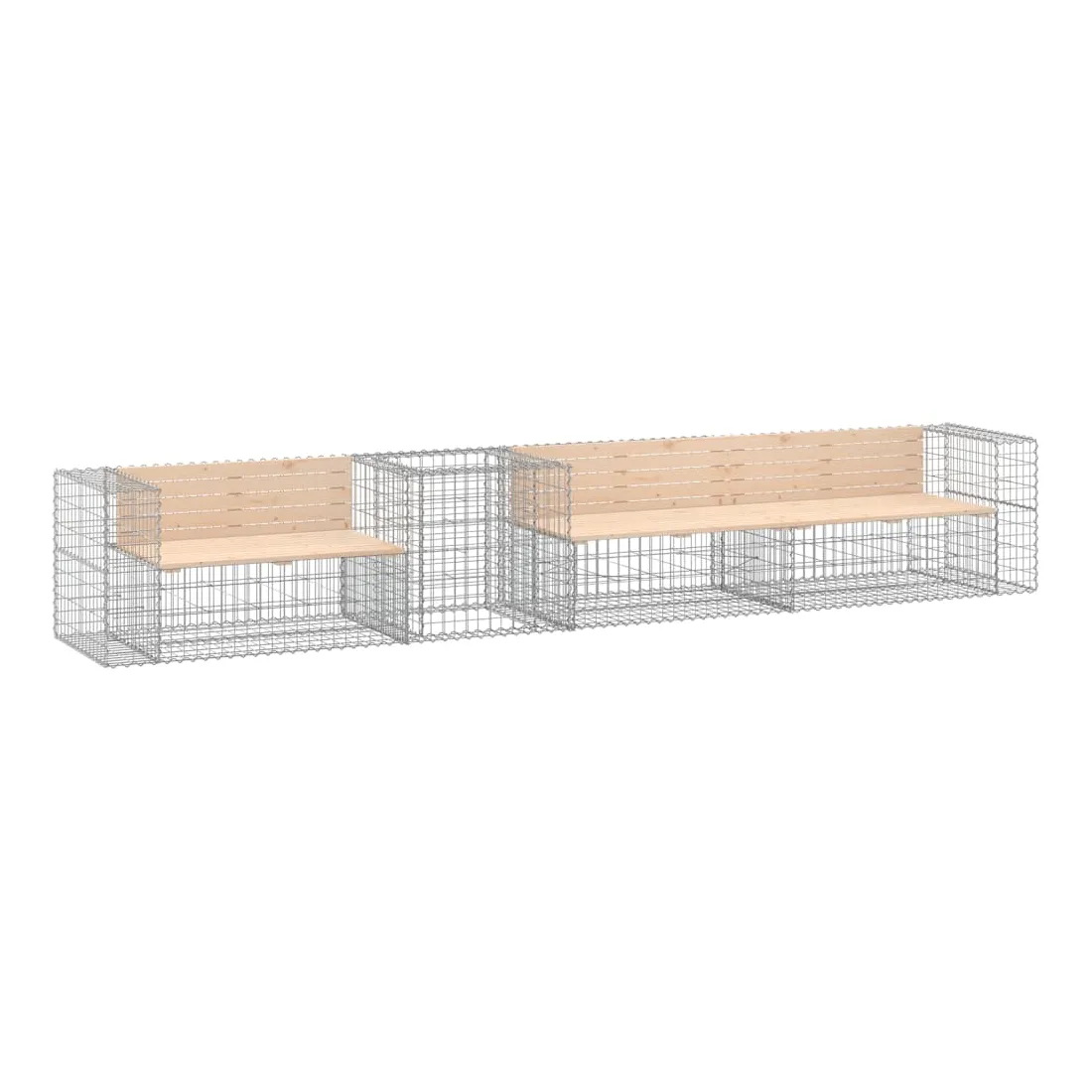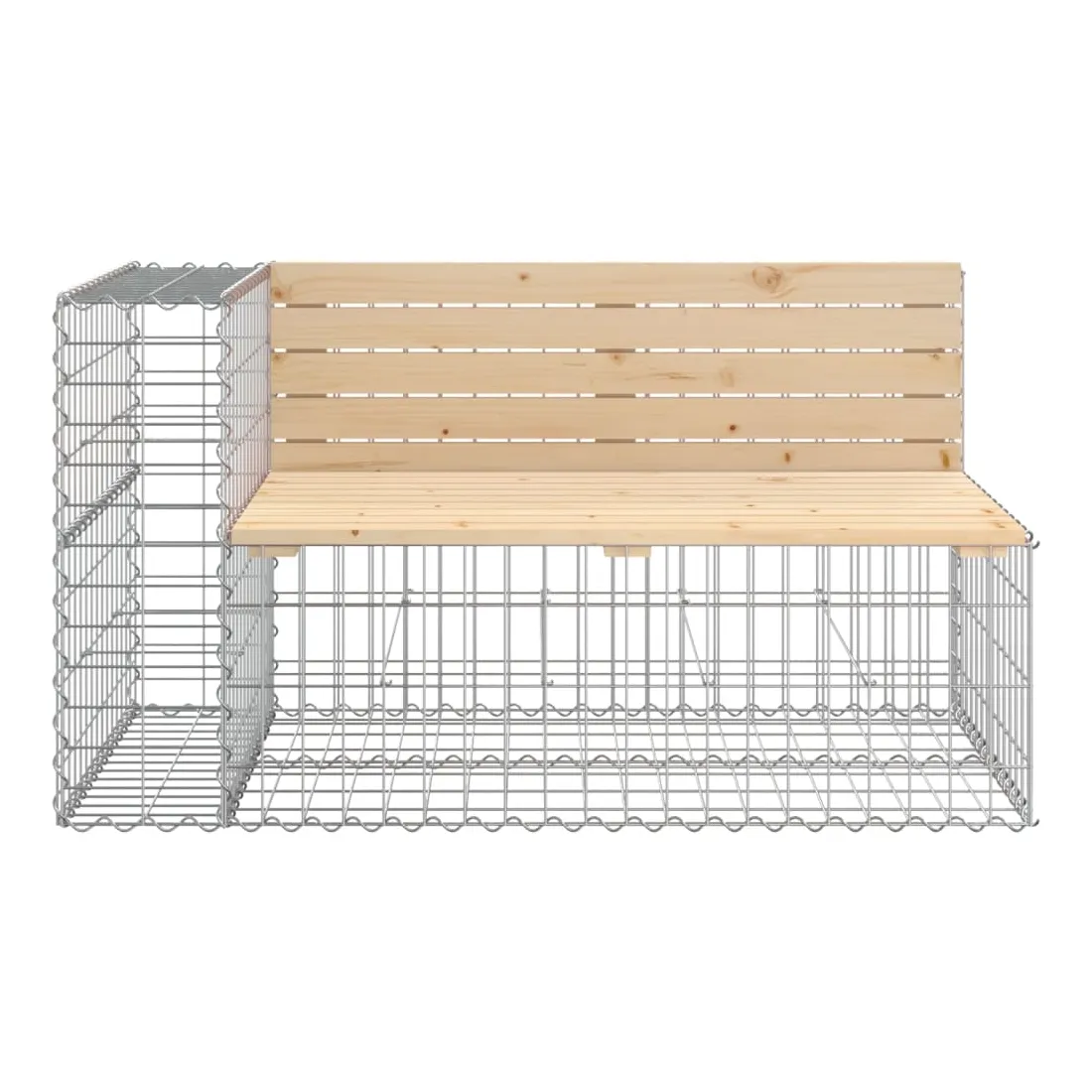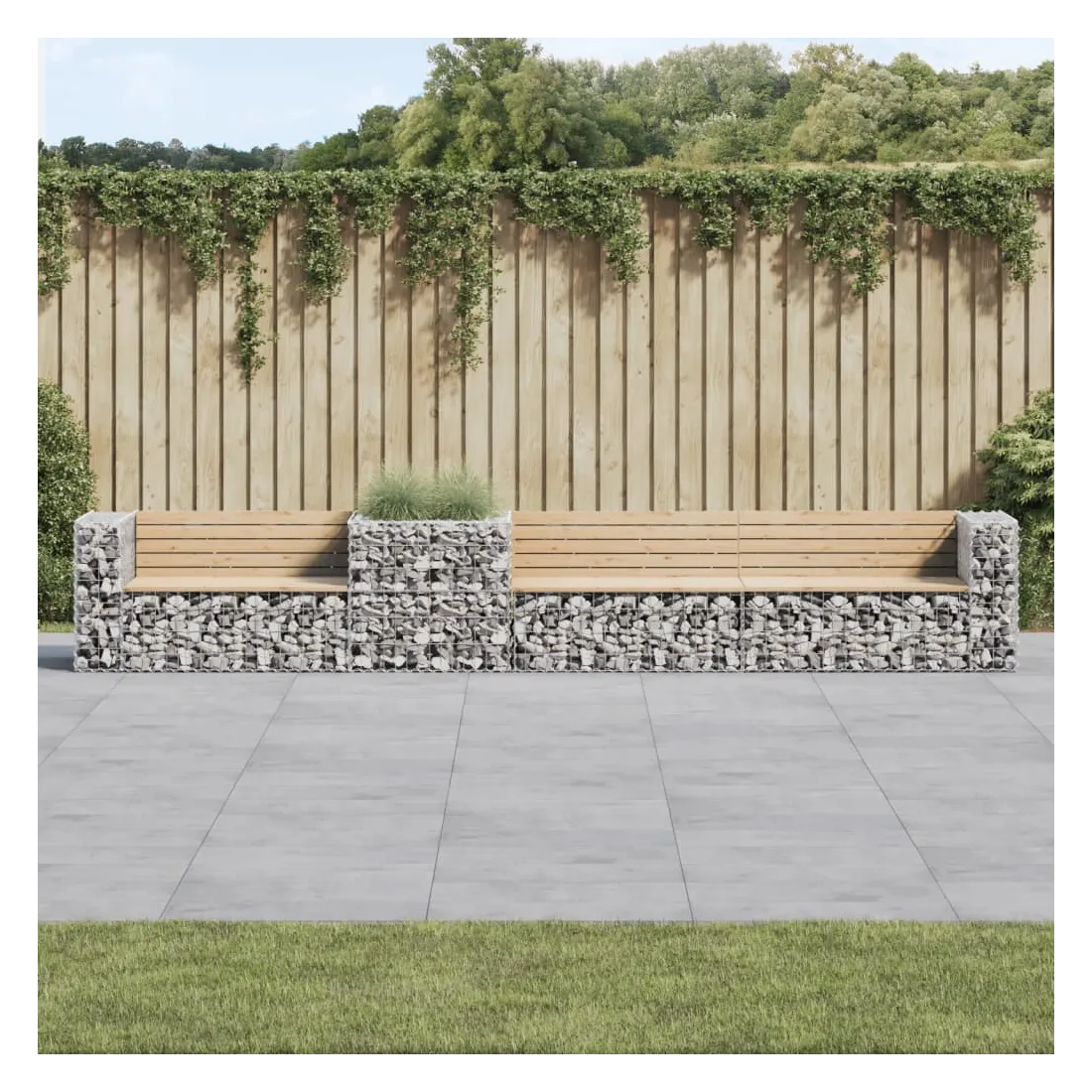 Ce banc de jardin avec panier en gabion seront un véritable accroche-regard dans votre espace de vie extérieur. Pin massif : le dessus du siège de jardin est en pin massif pour plus de durabilité. Le bois de pin massif est un beau matériau naturel. Son grain est droit et les nœuds confèrent au matériau son aspect rustique caractéristique.Base robuste et stable : le banc d'extérieur est doté d'une base en gabion en acier galvanisé conçue pour être remplie de roches et de graviers pour plus de beauté. La grille maillée du panier de gabion est soudée avec des fils transversaux et longitudinaux à chaque intersection pour une stabilité supplémentaire.Design compact : le banc de jardin est parfait pour un espace limité grâce à son design étroit et compact.Large éventail d'utilisations : le banc de parc convient aux jardins, arrière-cours, terrasses, coins secrets et à bien d'autres endroits. Bon à savoir :Ce produit est assemblé par 2 bancs de jardin (angle), un banc de jardin (central) et un panier de gabion.