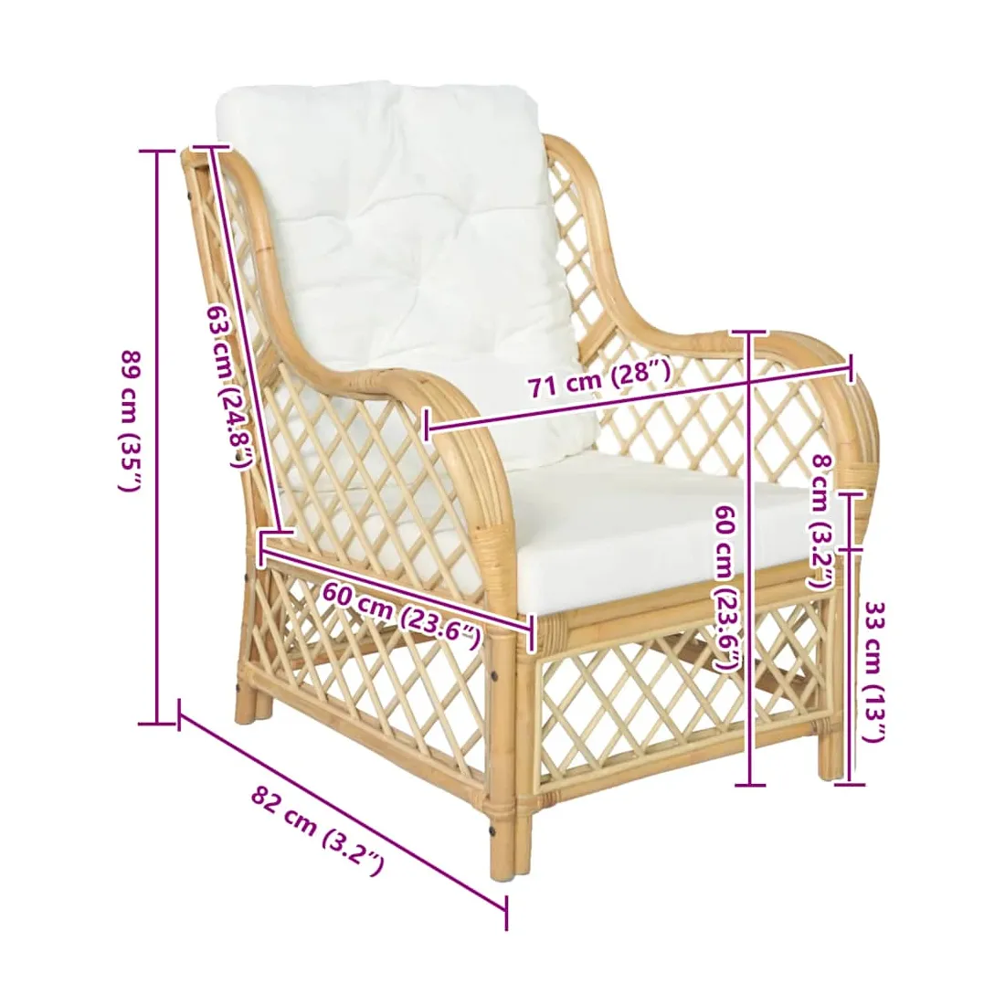 - Hauteur d’assise (sans coussin) : 33 cm