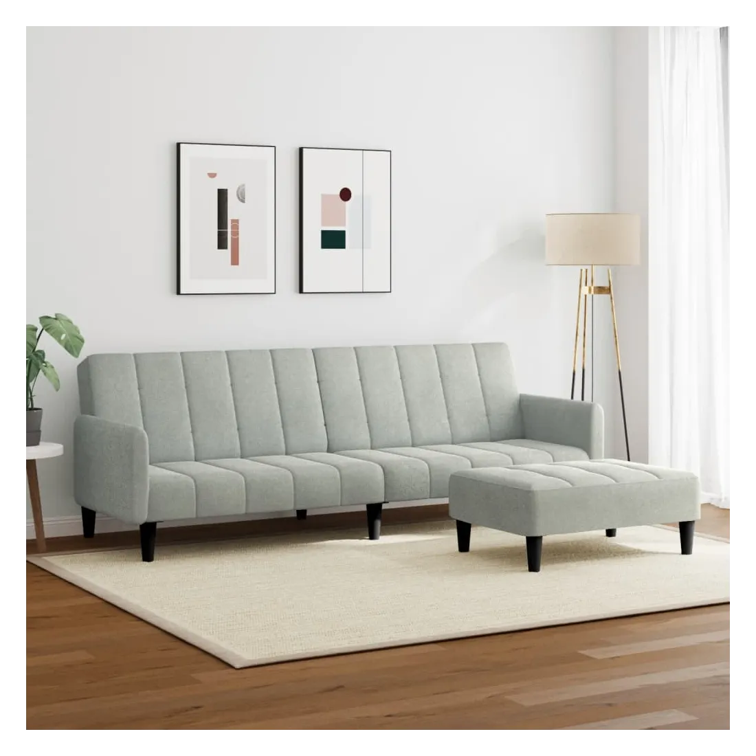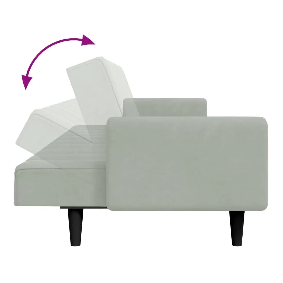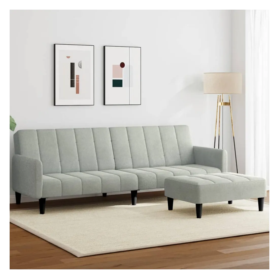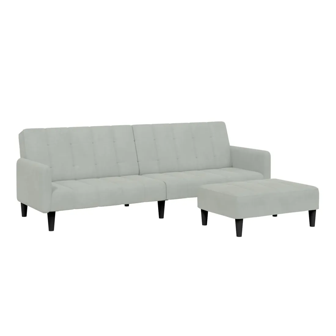 Canapé-lit à 2 places avec repose-pied gris clair velours