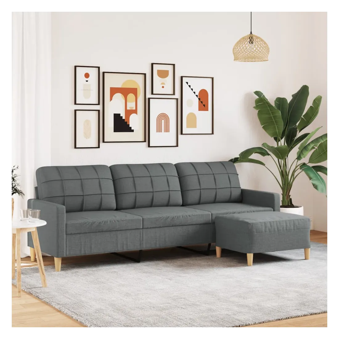 Ce canapé à 3 places est un excellent endroit pour discuter, lire, regarder la télévision ou simplement vous détendre. Il est destiné à être un point central dans votre maison. Matériau doux et durable : le tissu en polyester offre une combinaison de douceur, de respirabilité et de durabilité, vous garantissant un confort et une convivialité ultimes.Cadre robuste et stable : le cadre en métal du canapé de salon assure robustesse et stabilité.Expérience d'assise confortable : le canapé est très confortable avec les sièges, les accoudoirs et les oreillers de dossier bien rembourrés.Pouf polyvalent : le tabouret est polyvalent, servant de repose-pieds confortable lorsque vous vous allongez sur le canapé ou de siège supplémentaire dans votre jardin. De plus, le design simple et la taille compacte le rendent idéal pour presque tous vos espaces de vie.Design accrocheur : doté d'un design simple mais moderne, ce canapé est destiné à attirer l'attention dans votre chambre.
