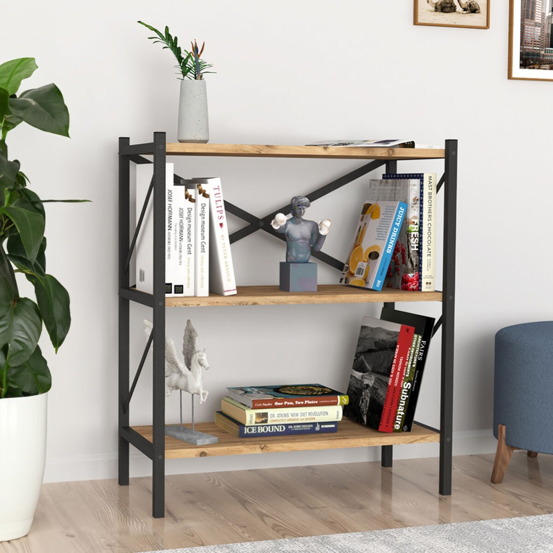 Boekenwinkel Alexandra House Living Zwart Ek Metaal Hout MDP 66 x 85 x 34 cm industrial 3 Planken