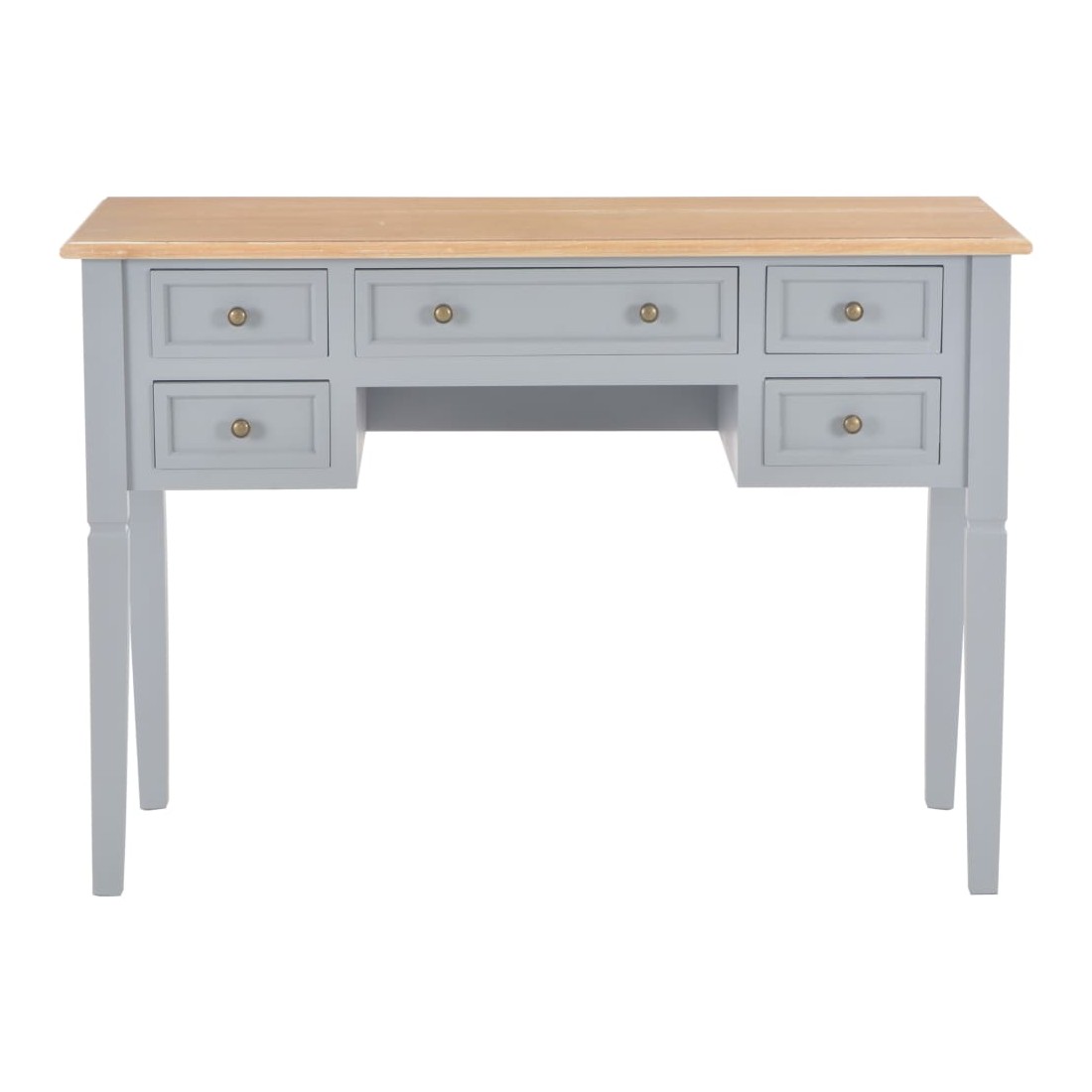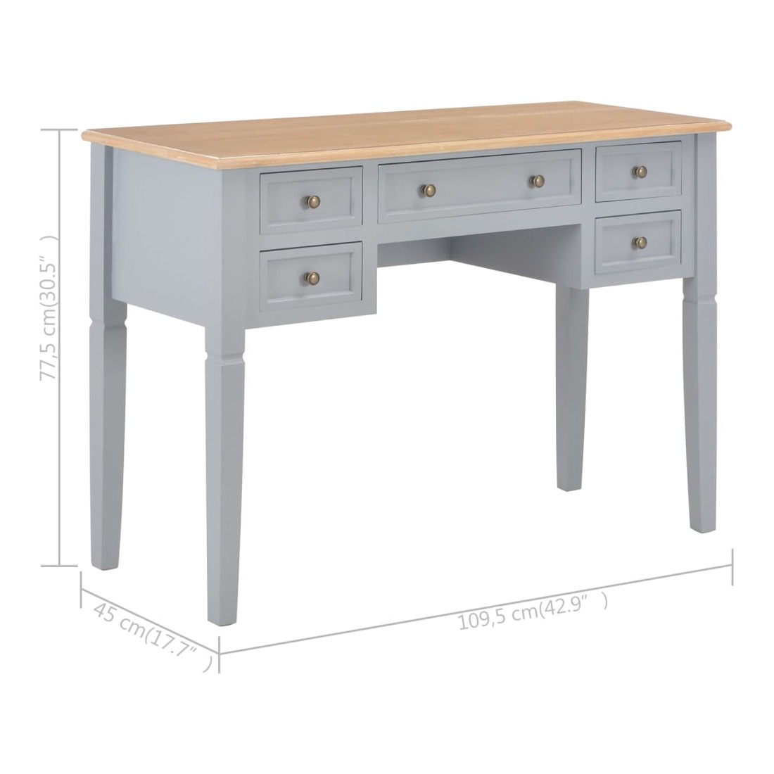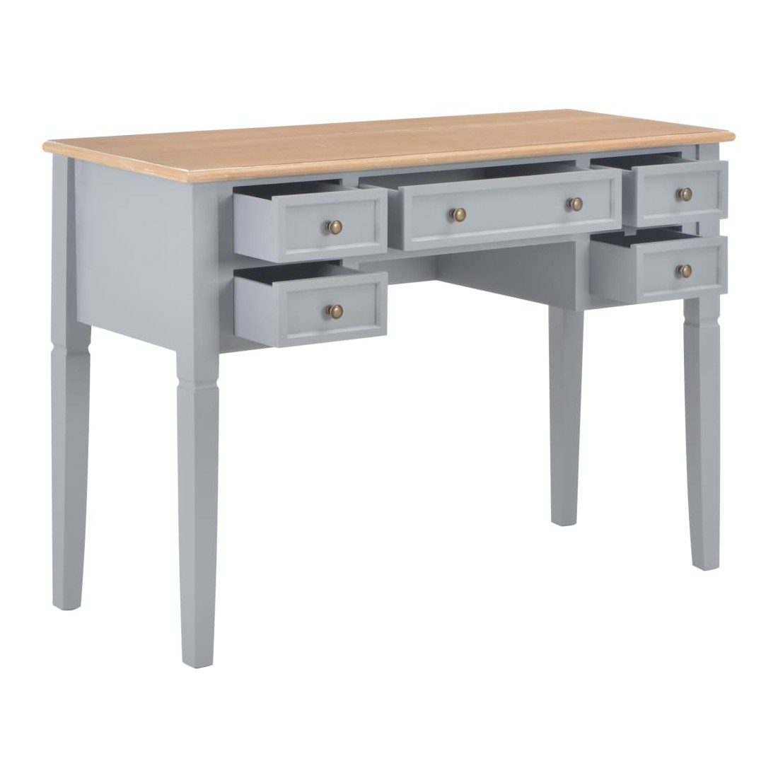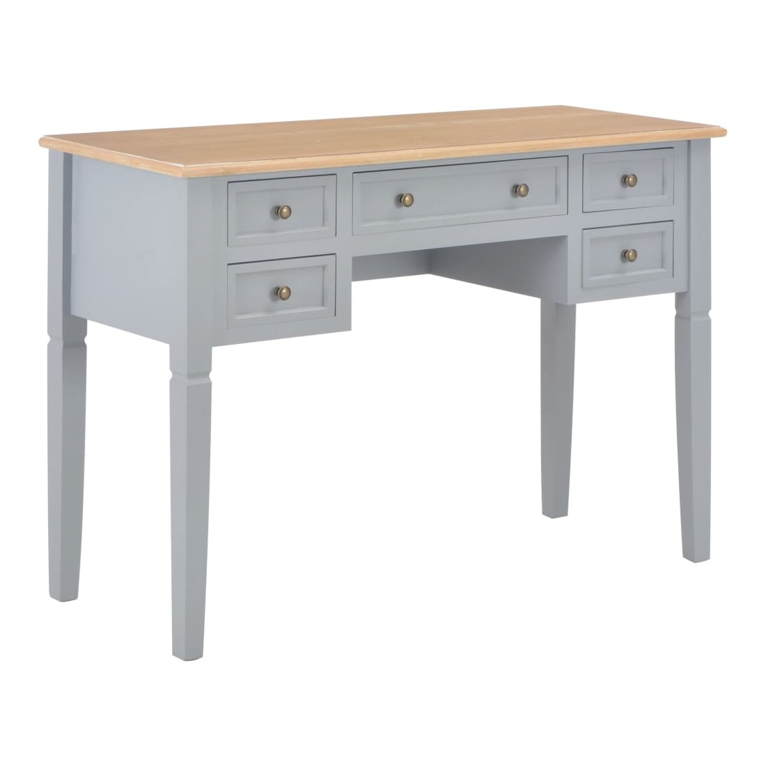 Ce bureau doté d'un design simple mais intemporel, ajoutera une touche romantique à votre bureau ou chambre. Ce bureau durable comporte cinq grands tiroirs à papeterie offrant assez d'espace pour stocker et organiser vos fichiers, papiers, documents et autres fournitures de bureau. Le bureau offre également suffisamment d'espace pour vos ornements ou autres effets personnels. Ce bureau robuste en MDF et bois de pin de haute qualité est peint en gris.