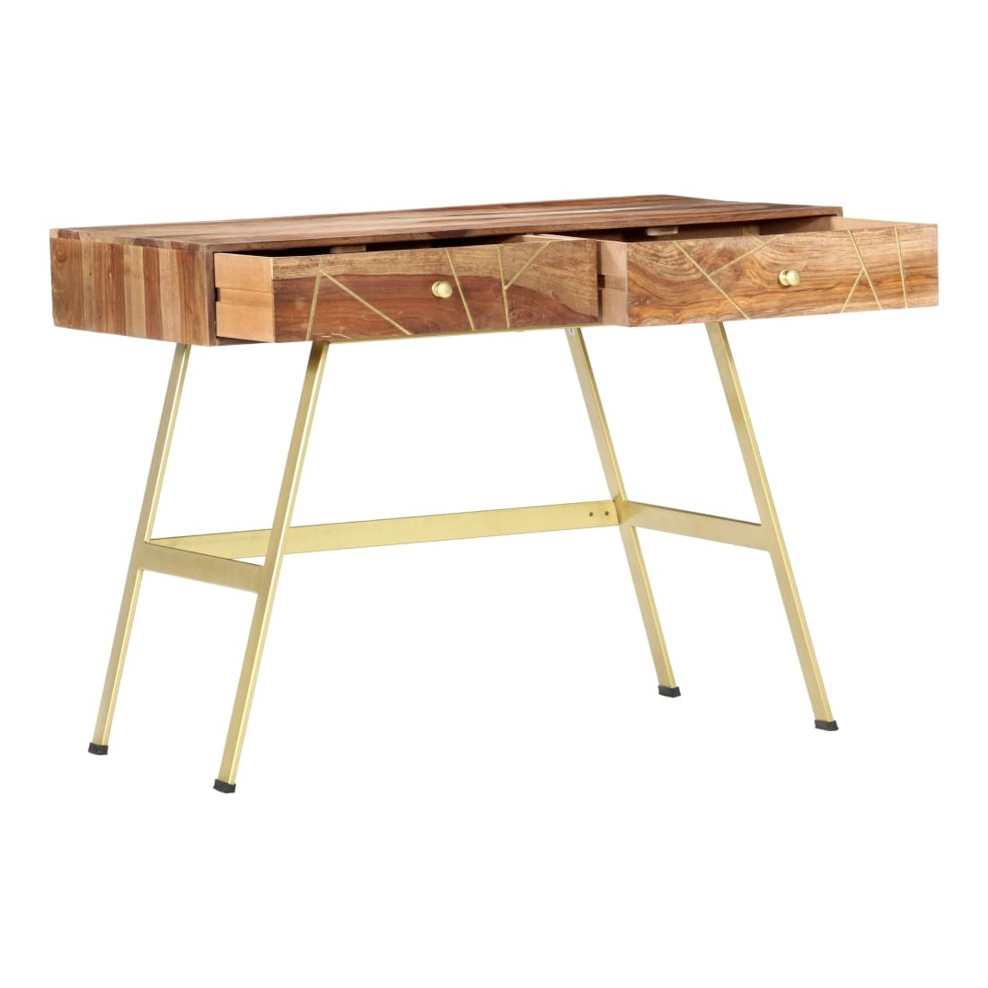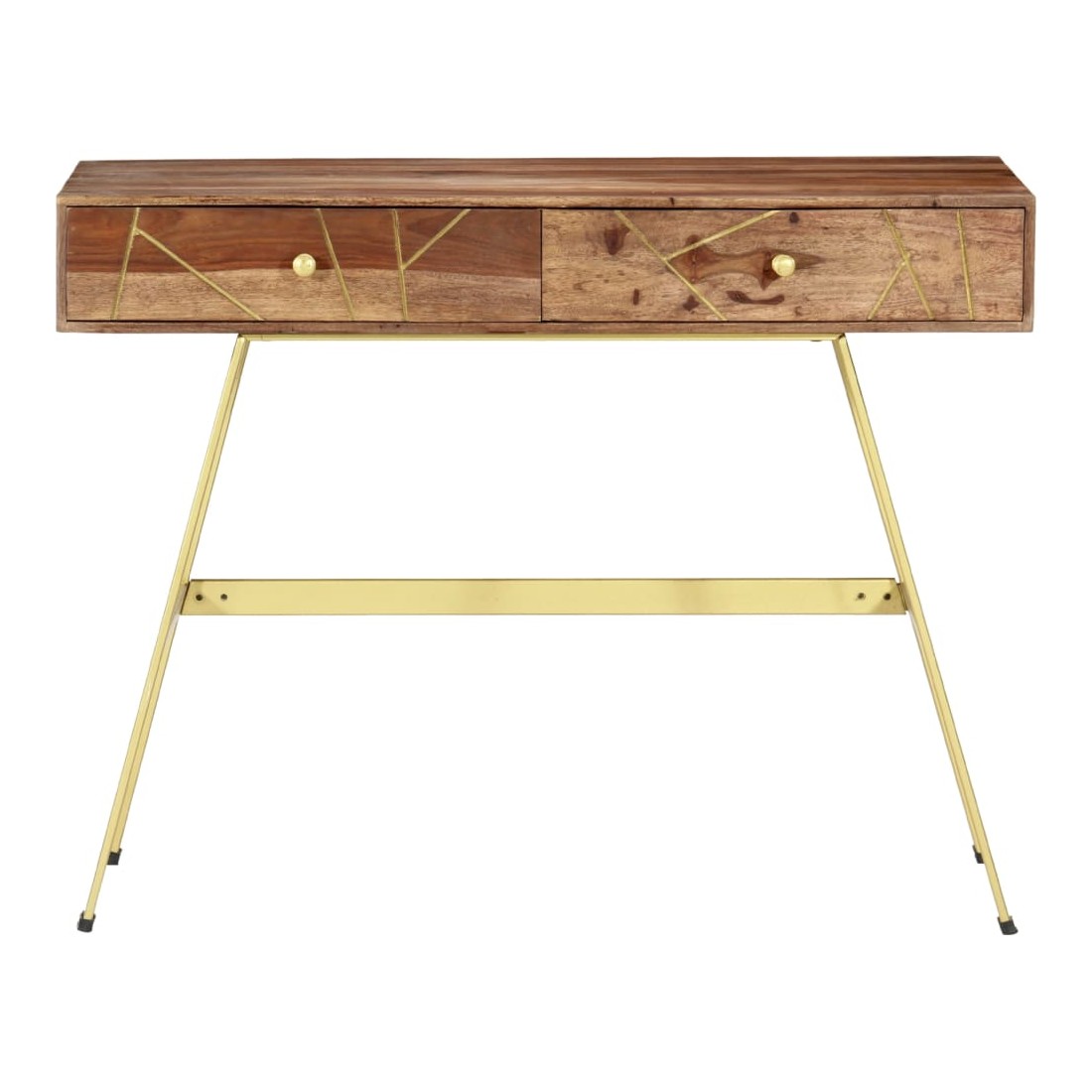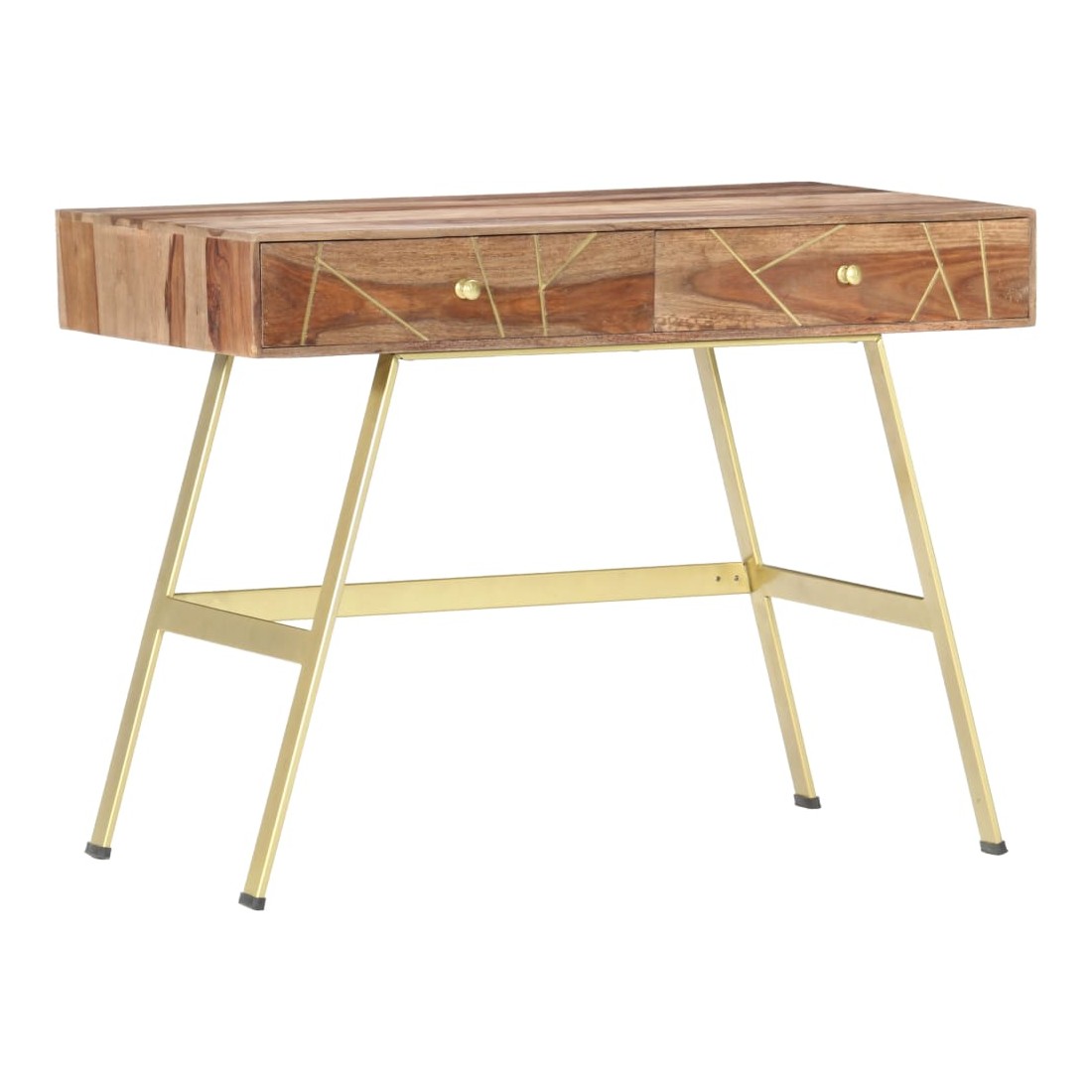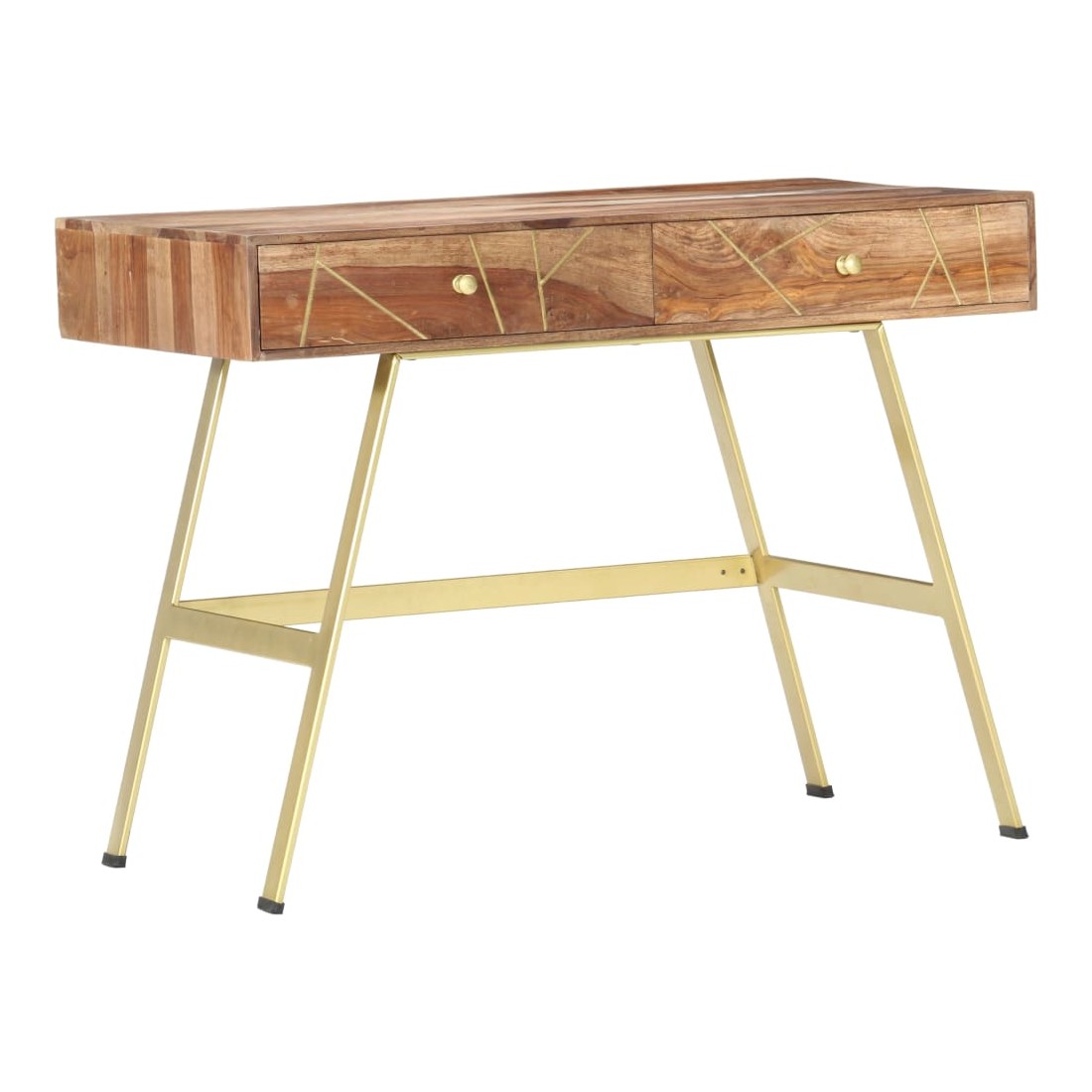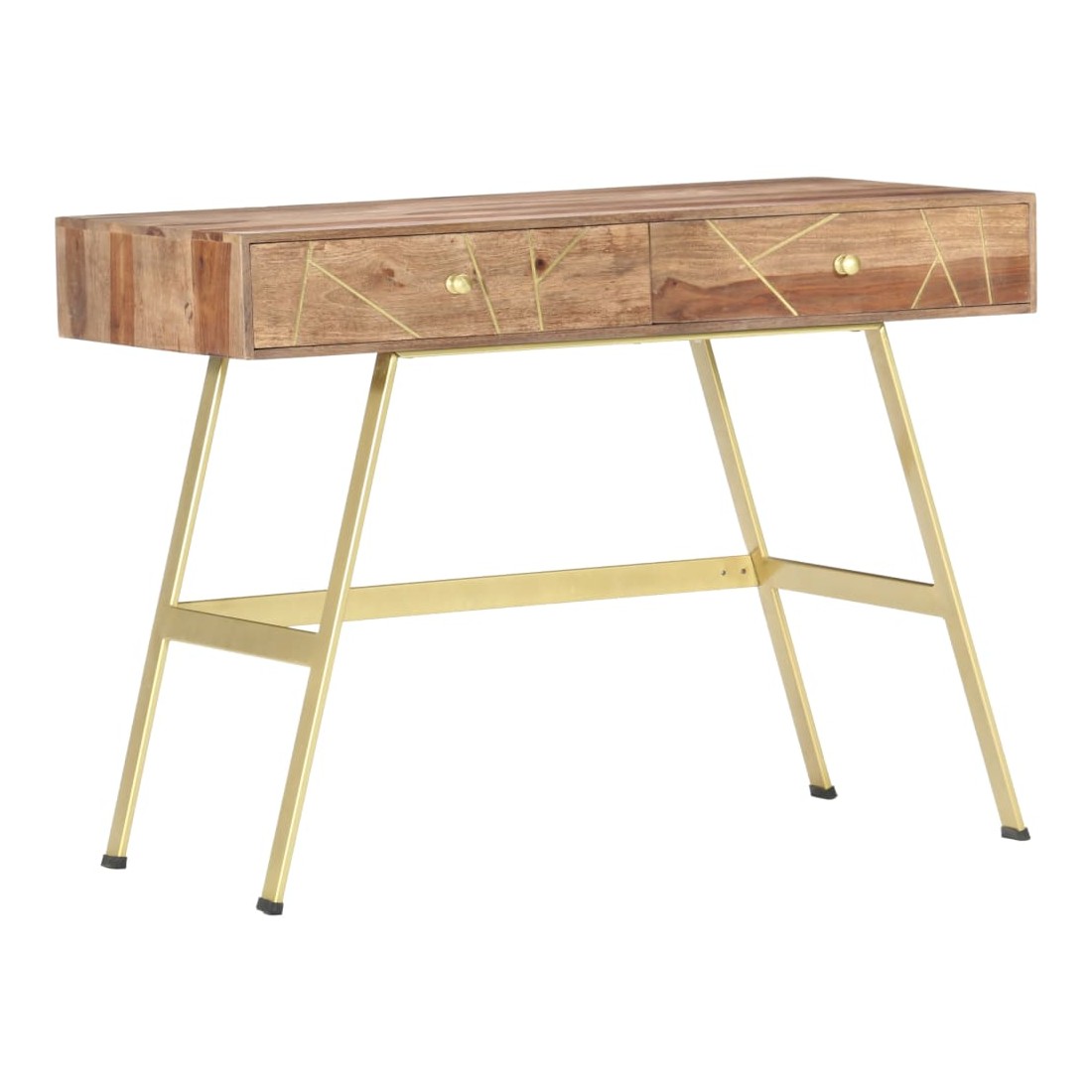 Ce bureau apportera une touche unique à votre intérieur grâce à son design industriel. Vous pouvez l'utiliser comme bureau d'ordinateur pour votre travail quotidien ou en tant que console. Le bureau est fait de bois massif qui est un bois dur tropical qui est célèbre pour ses grains riches et également connu sous le nom de bois de rose ou de palissandre. Les pieds en acier fort contribuent à la solidité du bureau ainsi qu'à son charme industriel. Chaque étape du processus est réalisée avec le plus grand soin, que ce soit le polissage, la peinture ou le laquage. De plus, le bureau a 2 tiroirs avec suffisamment d'espace pour garder vos articles importants organisés et à portée de main. Cet article est facile à assembler. Remarque importante : les couleurs varient d'une pièce à l'autre, rendant chacun de nos bureaux unique. La livraison est aléatoire. Remarque importante : Les couleurs varient d'une pièce à l'autre, rendant chacun de nos bureaux unique. La livraison est aléatoire, ce qui garantit l'exclusivité et l'individualité de votre produit.