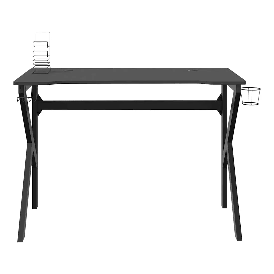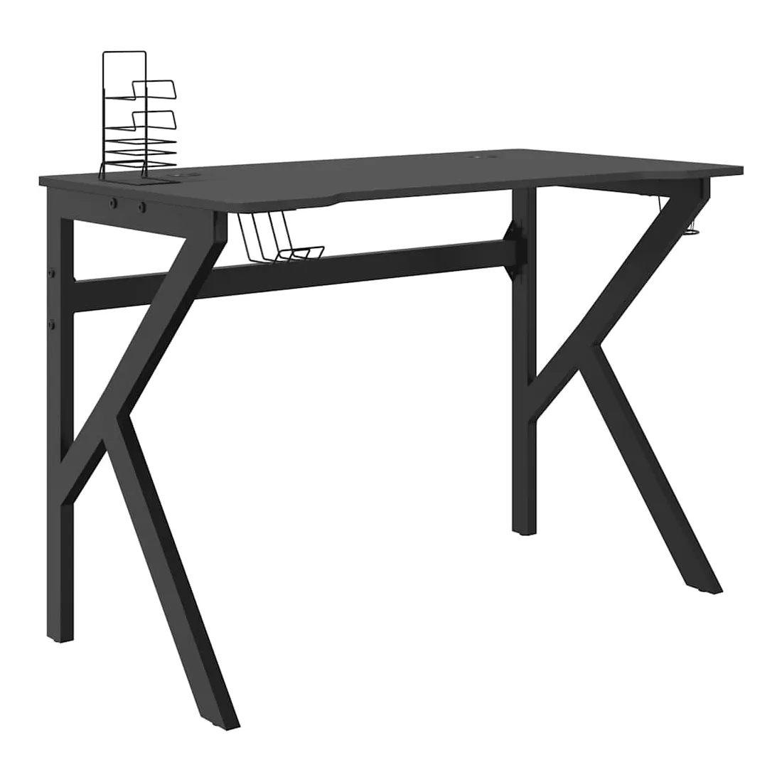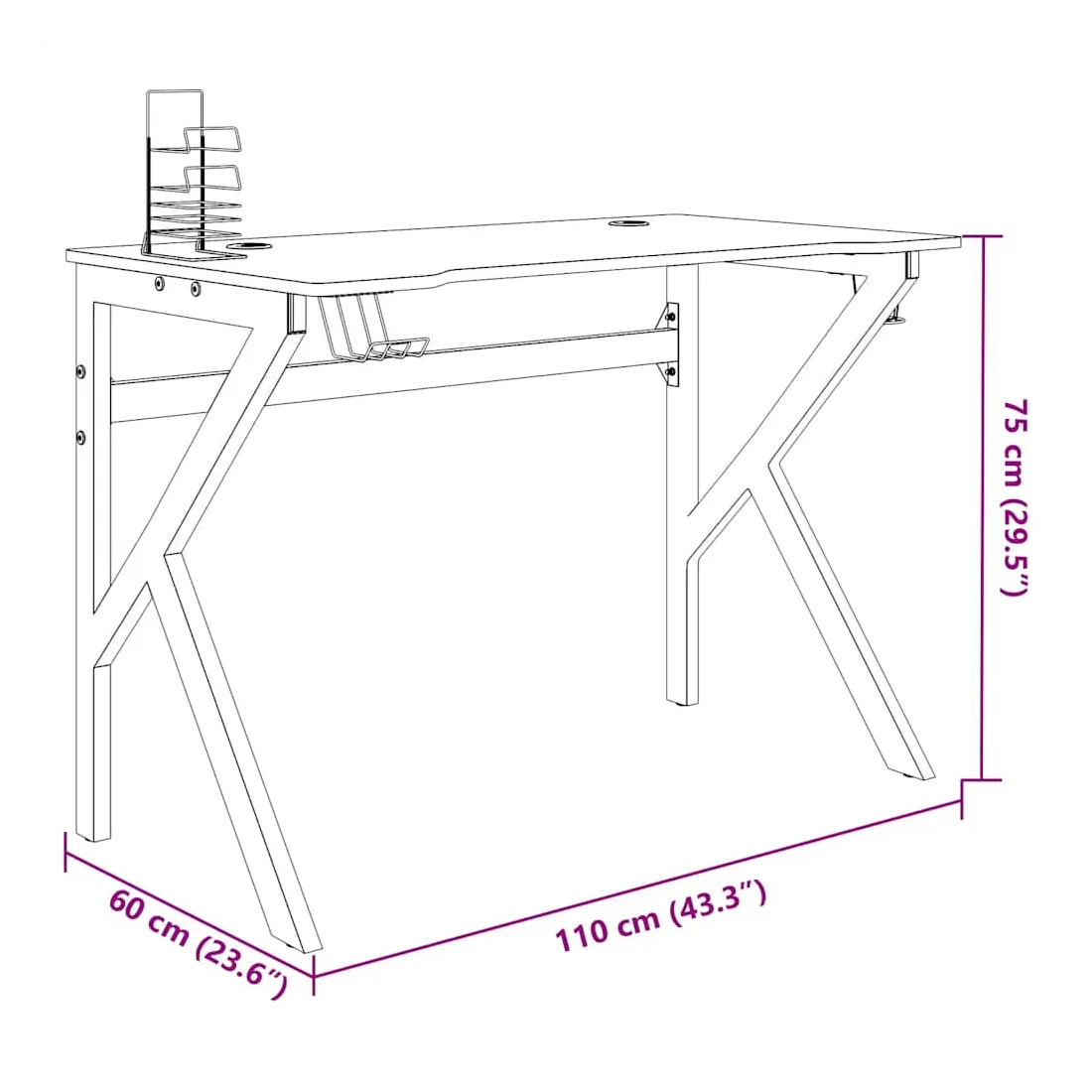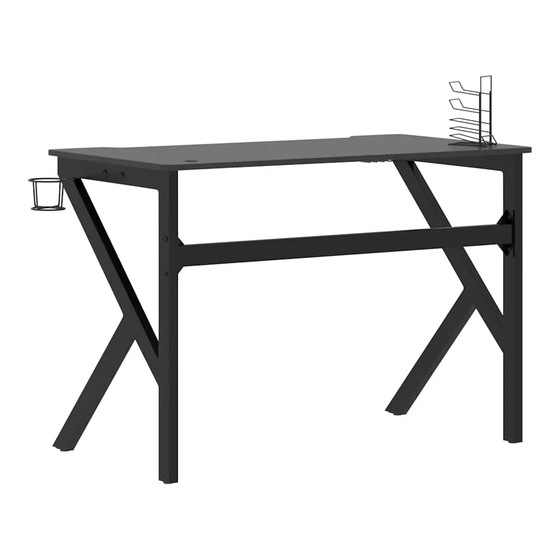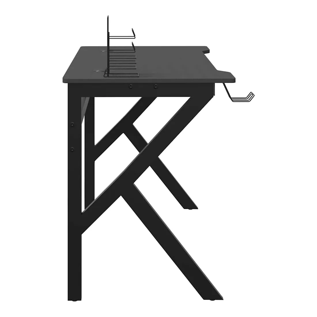 Ce bureau de jeu est un meuble qui vous rend plus confortable et pratique lorsque vous jouez à des jeux ! Confort amélioré : bénéficiez d'un confort et d'une concentration ultimes grâce à la conception ergonomique de ce bureau d'ordinateur, garantissant une posture parfaite pour des sessions de jeu ou de travail prolongées.Fonctionnalités pratiques : le bureau de jeu PC comprend un support pour écouteurs et un support pour contrôleur intégrés pour une organisation sans effort, ainsi qu'un porte-gobelet durable pour garder vos boissons en sécurité et facilement accessibles pendant les sessions de jeu.Conception spacieuse : cette table de jeu offre suffisamment d'espace pour vos moniteurs de jeu, votre PC, votre clavier et d'autres accessoires, vous offrant une configuration propre et organisée.Durable et stable : fabriquée avec un bureau en bois d'ingénierie et des pieds en fer en forme de K, cette table d'ordinateur offre une stabilité exceptionnelle pour résister aux exigences des sessions de jeu intenses.Élégant et fonctionnel : la finition noire élégante et le design épuré ajoutent une touche moderne à n'importe quelle salle de jeu ou bureau, alliant style et praticité.