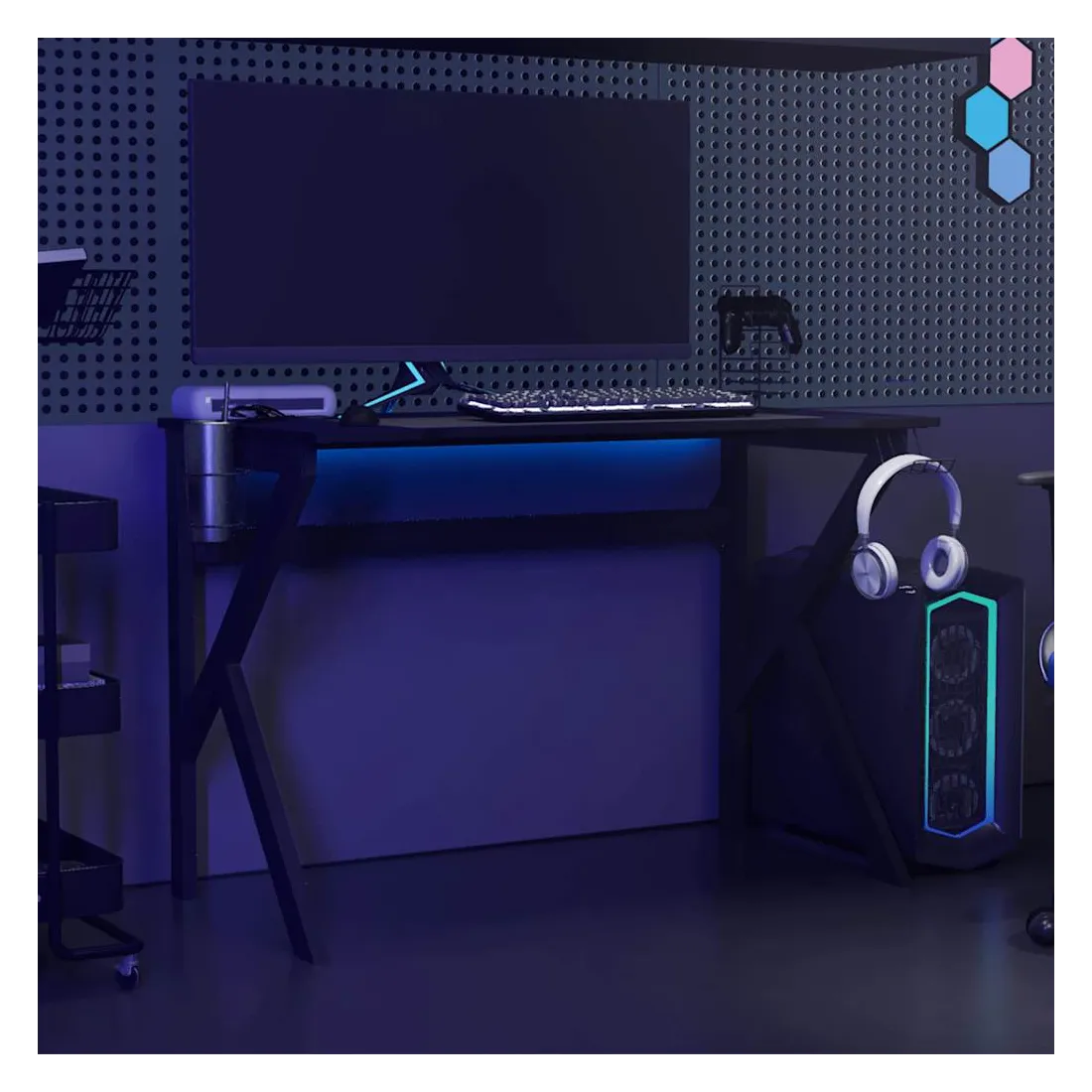 - Comprend un support pour écouteurs, un porte-gobelet et un support pour manettes