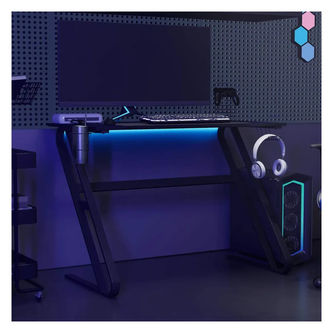 - Comprend un support pour écouteurs, un porte-gobelet et un support pour manettes