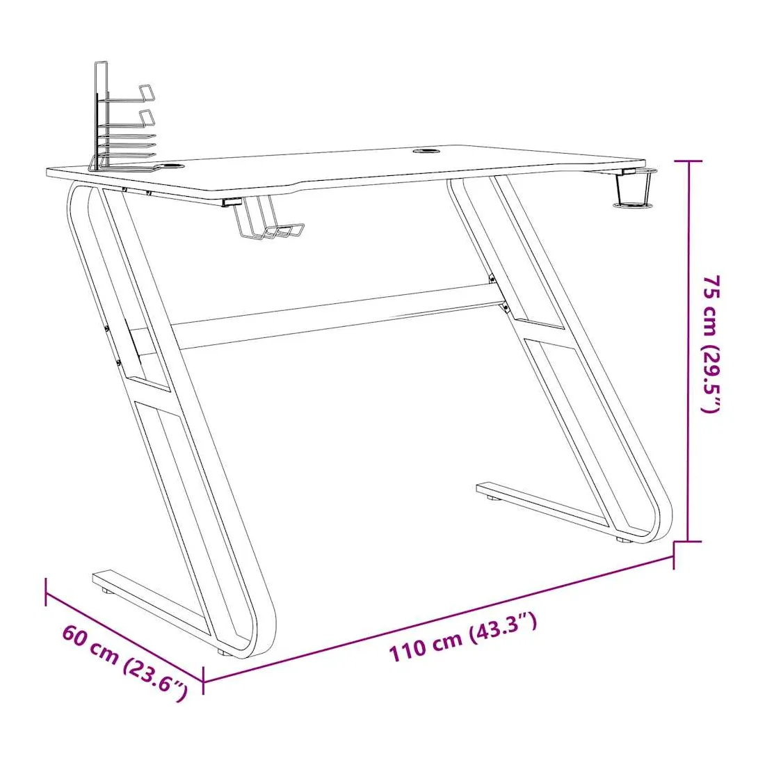 vidaXLCe bureau de jeu garantit votre concentration et votre confort tout en jouant ou en travaillant. La conception ergonomique simplifiée offre une posture de jeu parfaite, vous aidant à jouer plus longtemps et plus fort ! Ce bureau d’ordinateur comprend un support d’écouteurs et un support de contrôleur, qui peuvent tenir vos écouteurs au bout de vos doigts. Il a également un porte-gobelet pour garder vos boissons. Il fournit un espace massif pour vos moniteurs de jeu, PC, claviers de jeu et autres équipements de jeu. De plus, la conception des pieds en forme de ZZ en fer le rend stable et peut résister aux exigences de tout joueur sérieux.