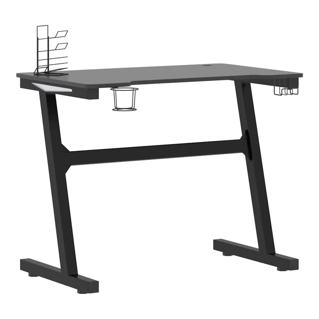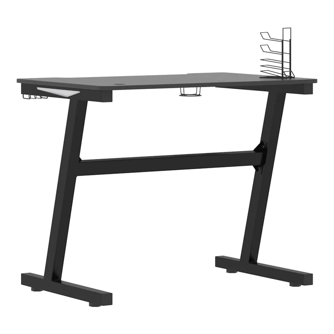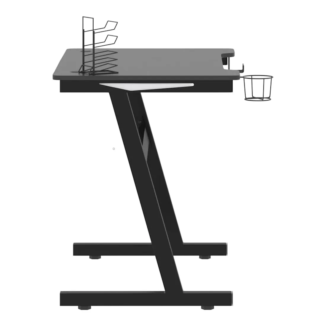 Ce bureau de jeu à LED vous permettra d'entrer dans le mode de jeu lorsque vous plongez dans la lumière RVB. La conception ergonomique simplifiée offre une posture de jeu parfaite, vous aidant à jouer plus longtemps et plus fort ! Ce bureau d’ordinateur comprend un support d’écouteurs et un support de contrôleur, qui peuvent tenir vos écouteurs au bout de vos doigts. Il a également un porte-gobelet pour garder vos boissons. Il fournit un espace massif pour vos moniteurs de jeu, PC, claviers de jeu et autres équipements de jeu. De plus, la conception des pieds en forme de Z en fer le rend stable et peut résister aux exigences de tout joueur sérieux. Bon à savoir : le produit est doté d'un connecteur USB qui nécessite une source d'alimentation certifiée de USB 5V (non incluse).