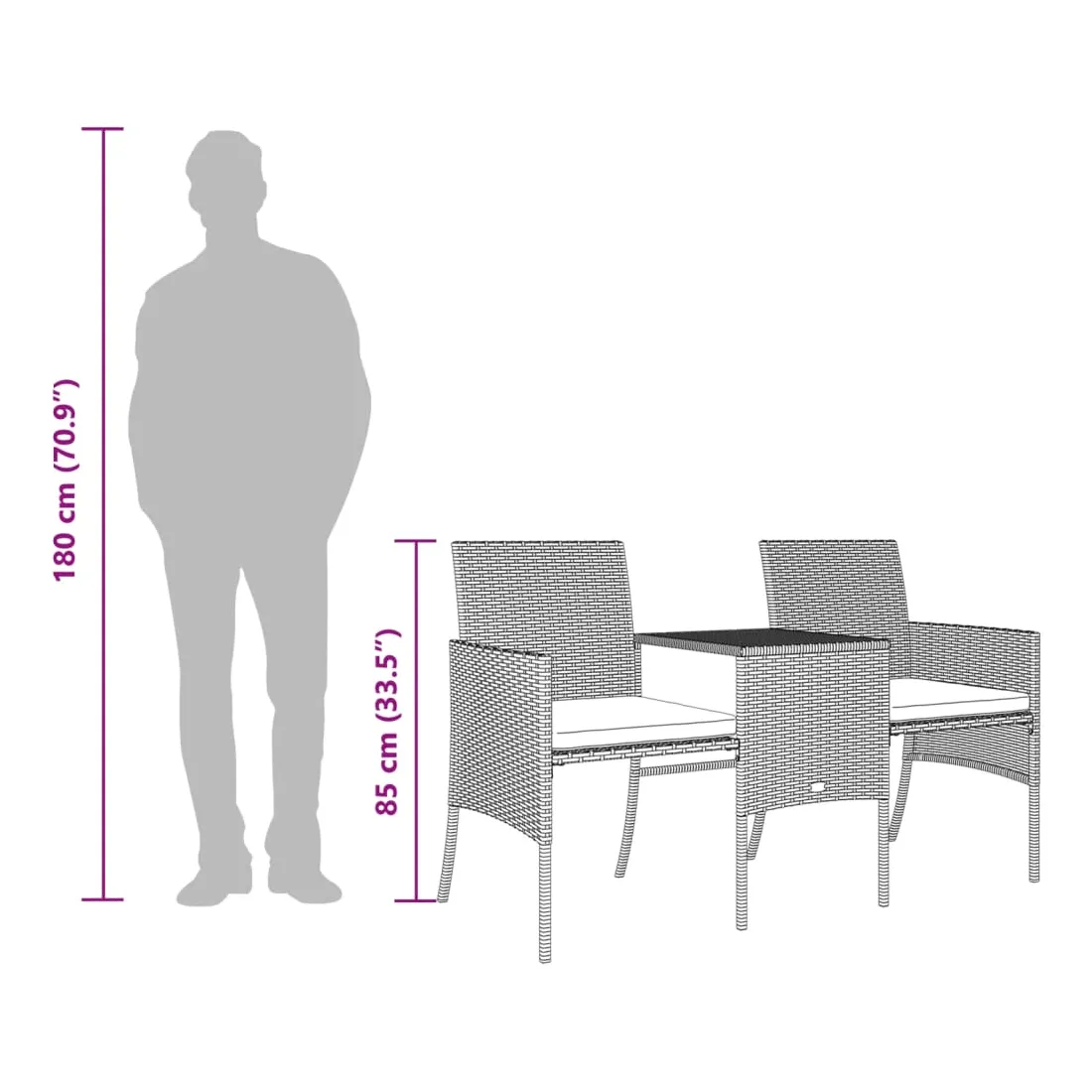 - Canapé de jardin à 2 places avec table :