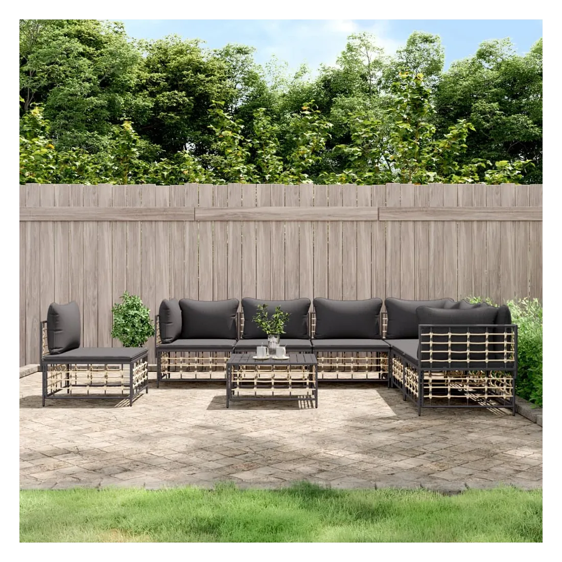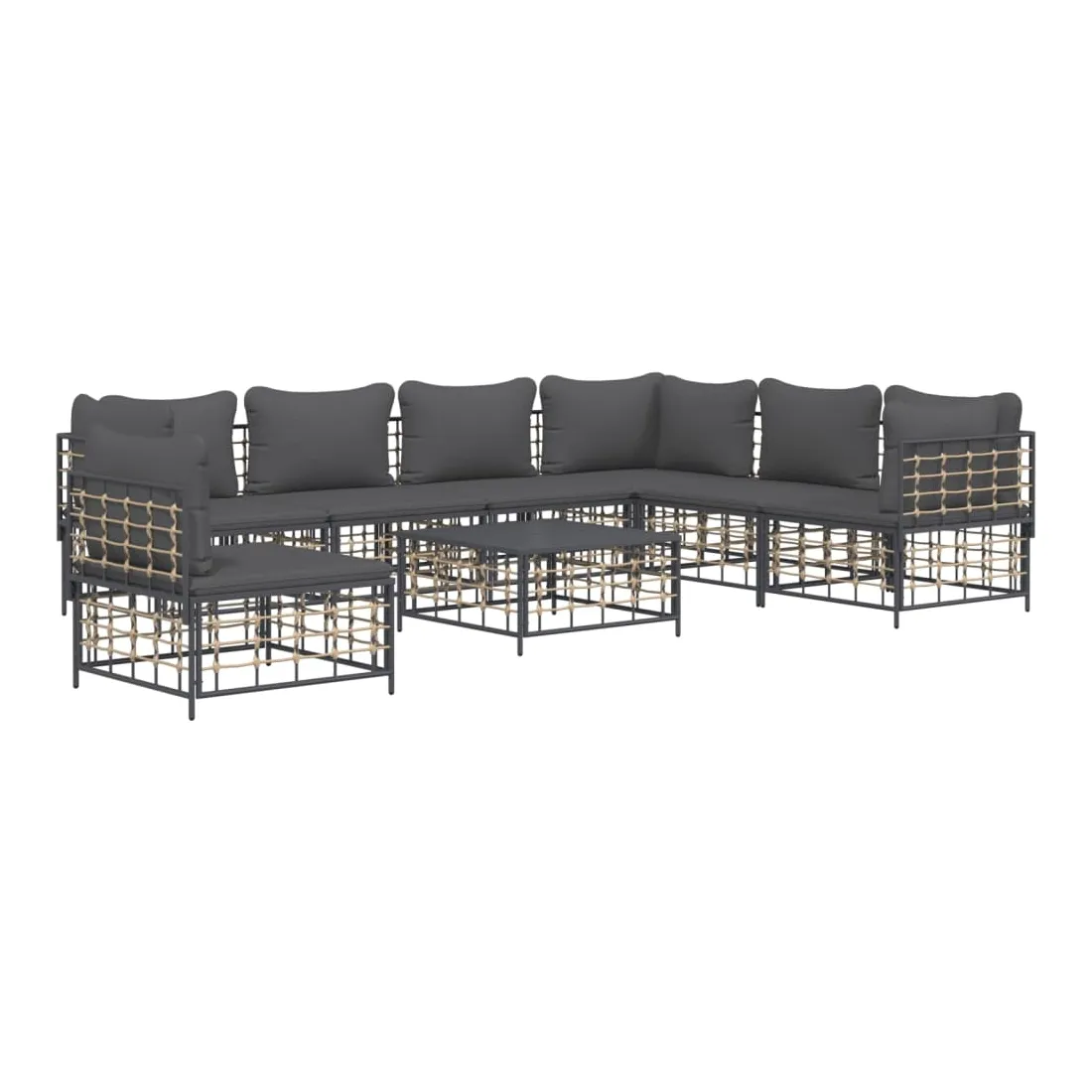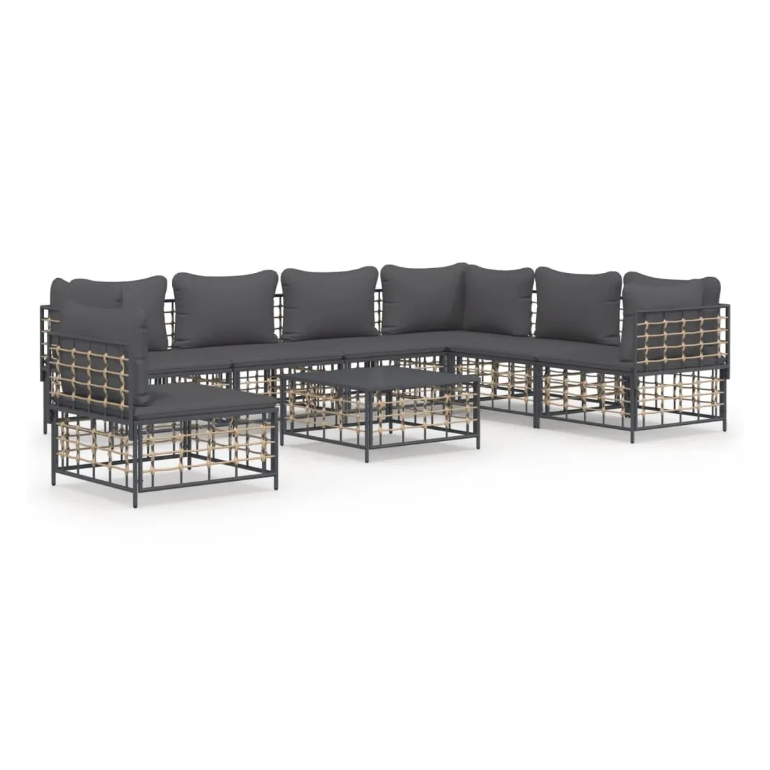 Profitez d'un moment de café confortable dans votre espace extérieur avec cet ensemble de salon de jardin ! C'est un complément parfait à votre jardin et à votre terrasse, créant une impression durable ! Matériau résistant aux intempéries : le poly rotin est résistant aux intempéries et facile à nettoyer. Il reste beau à l'extérieur pendant une longue période de temps. Il est plus économique que d'autres matériaux, tout en offrant une excellente qualité, une commodité et un aspect esthétique.Cadre robuste et stable : le cadre en acier de l'ensemble de salon assure robustesse et stabilité.Expérience d'assise confortable : le dossier ajoute un confort d'assise supplémentaire pour l'ensemble de salon. De plus, les coussins bien rembourrés offrent un confort pour votre temps d'assise.Dessus de table robuste : le dessus de table robuste de la table basse est parfait pour placer des repas, des boissons, des vases, des bols de fruits ou d'autres objets décoratifs.Conception modulaire : l'ensemble de salon de jardin est flexible et facile à déplacer, vous pouvez donc le combiner avec d'autres segments modulaires de la boutique en ligne pour créer vos propres configurations personnelles de salon de jardin ! Remarque :Pour que vos meubles d'extérieur restent beaux, nous vous recommandons de les protéger avec une housse imperméable.