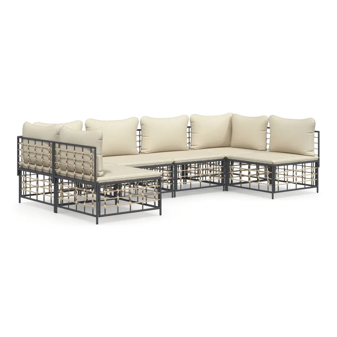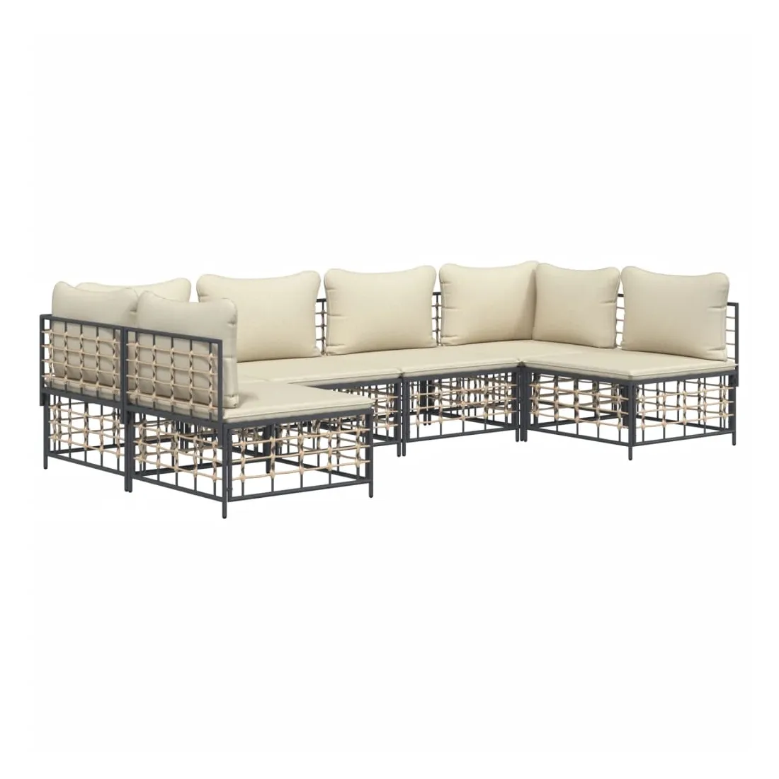 Salon de jardin 6 pcs avec coussins anthracite résine tressée