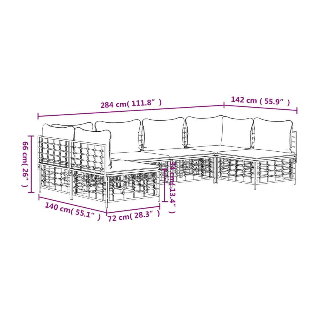 - Dimensions du coussin de siège : 70 x 70 x 5 cm (l x P x é)
