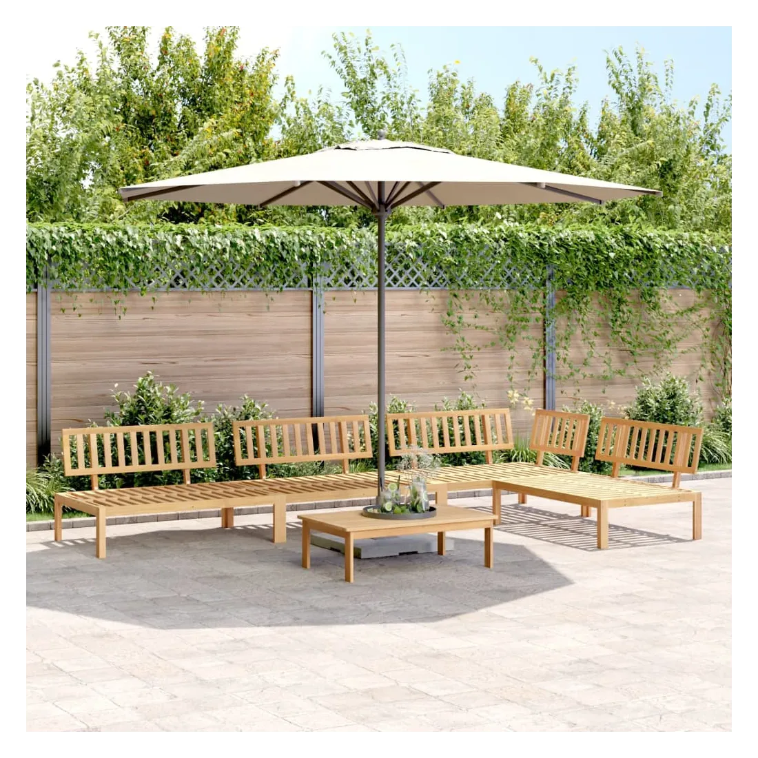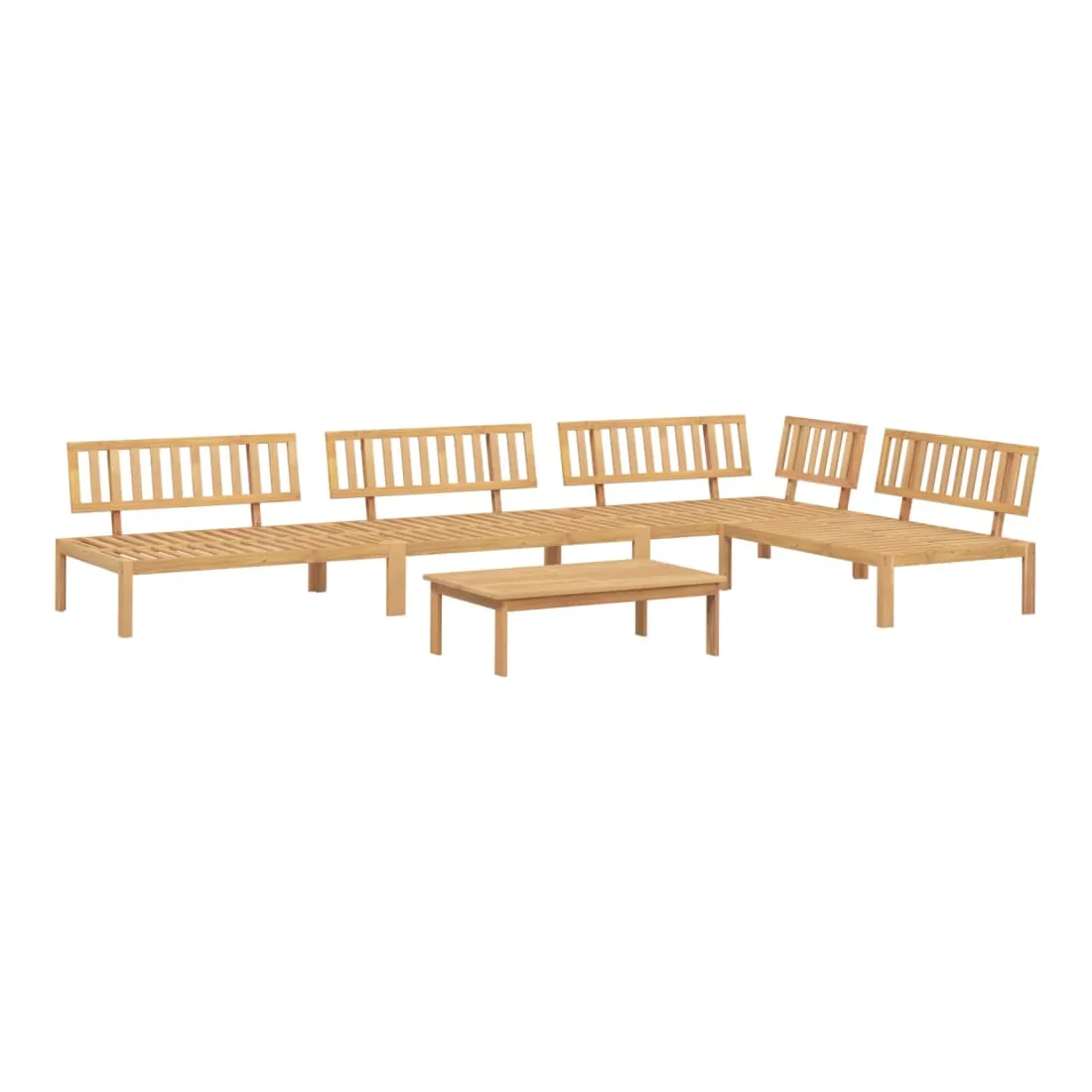 vidaXLCet ensemble de canapés palette en bois comprend 1 table et 4 canapés. C'est un excellent choix pour une utilisation relaxante en extérieur. Matériau durable : le bois d'acacia massif est un matériau naturel magnifique. Le bois d'acacia est un bois dur tropical, qui est dense, robuste et durable. Sa finition à l'huile permet à cet ensemble de meubles d'être utilisée à l'extérieur.Expérience d'assise confortable : le dossier ajoute un confort d'assise supplémentaire au canapé d'extérieur. Design modulaire : le canapé sectionnel est flexible et facile à déplacer. Vous pouvez le combiner avec d'autres segments modulaires disponibles dans le menu déroulant pour créer vos propres configurations de salon de jardin ! Bon à savoir :Pour que vos meubles d'extérieur restent beaux, nous vous recommandons de les protéger avec une housse imperméable.Le coussin n'est pas inclus avec ce canapé palette. Nous offrons un coussin de palette standard de 120x80 cm. Vous pouvez consulter notre boutique pour trouver un coussin assorti.