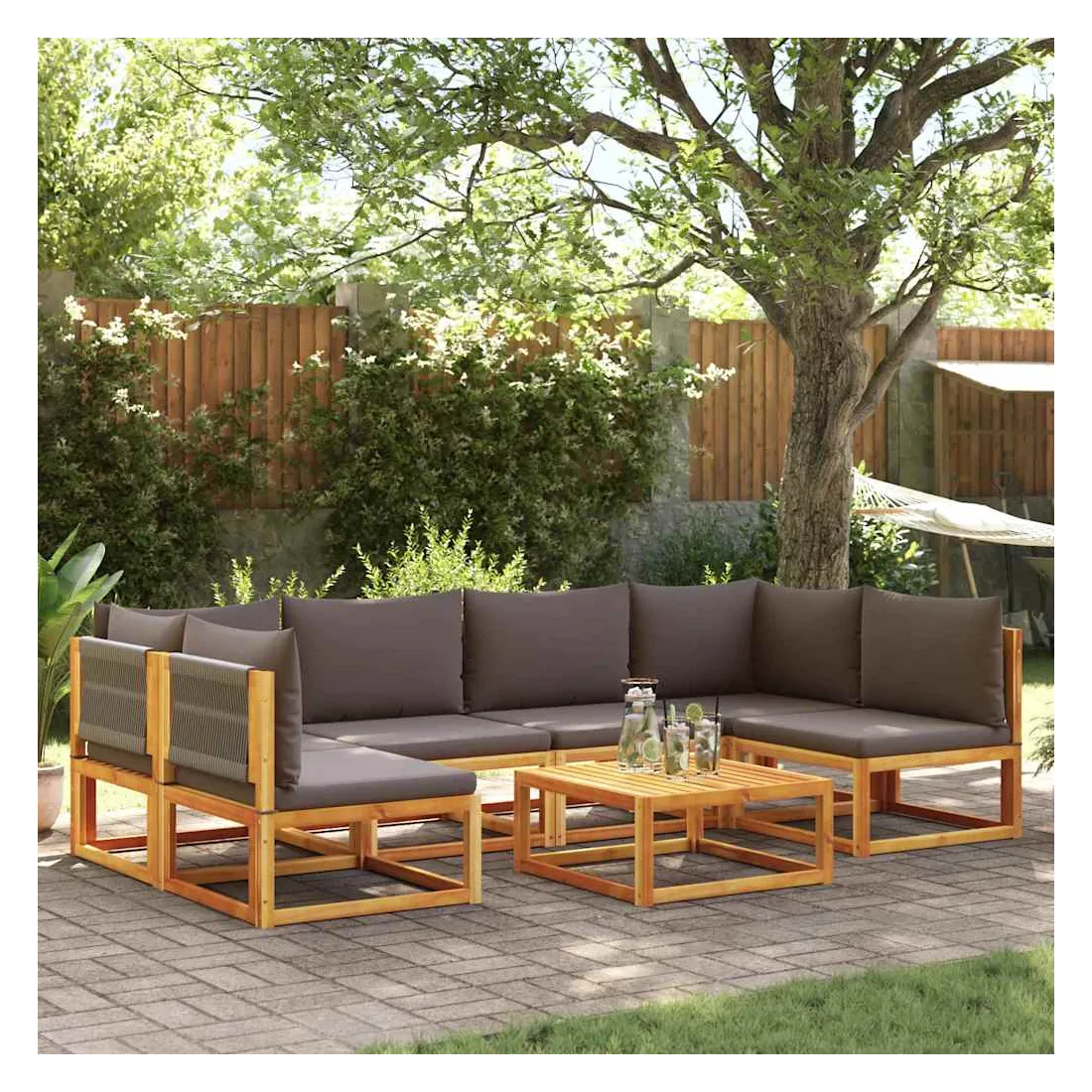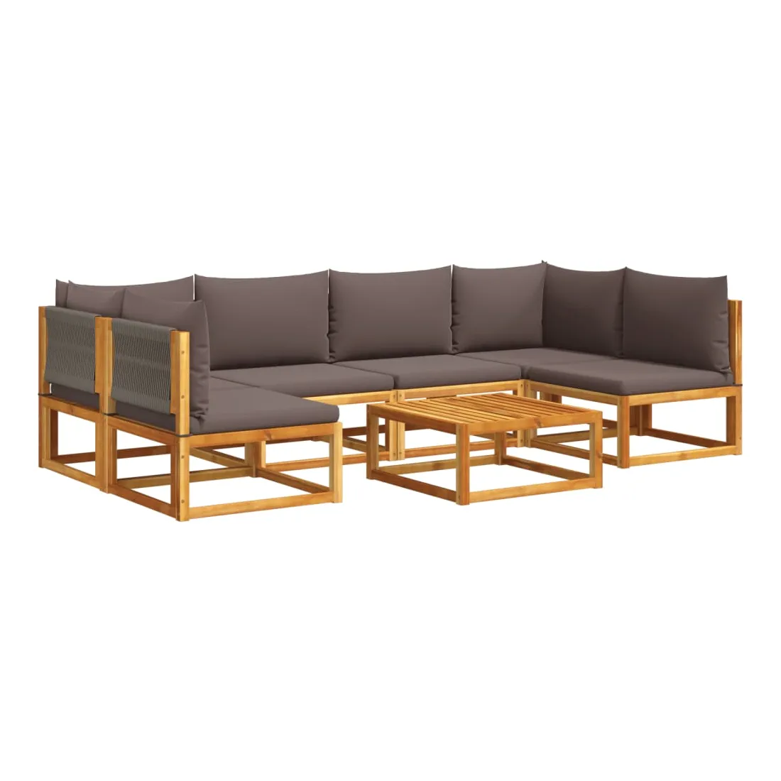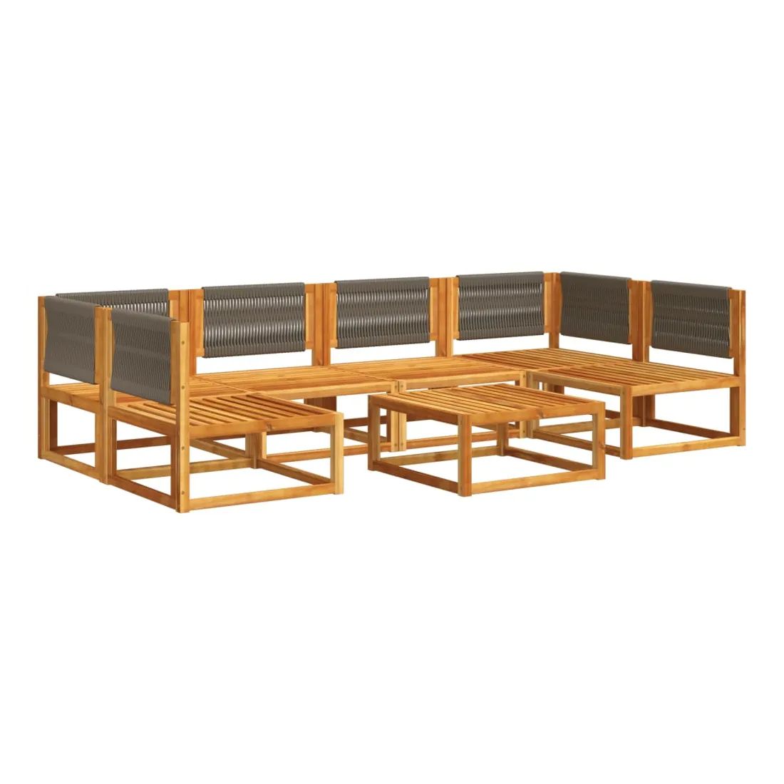 Ensemble de canapés de jardin 7 pièces avec coussins, bois d'acacia et corde,