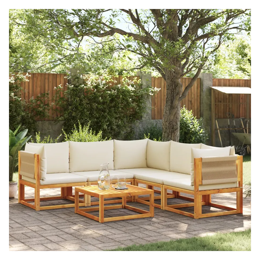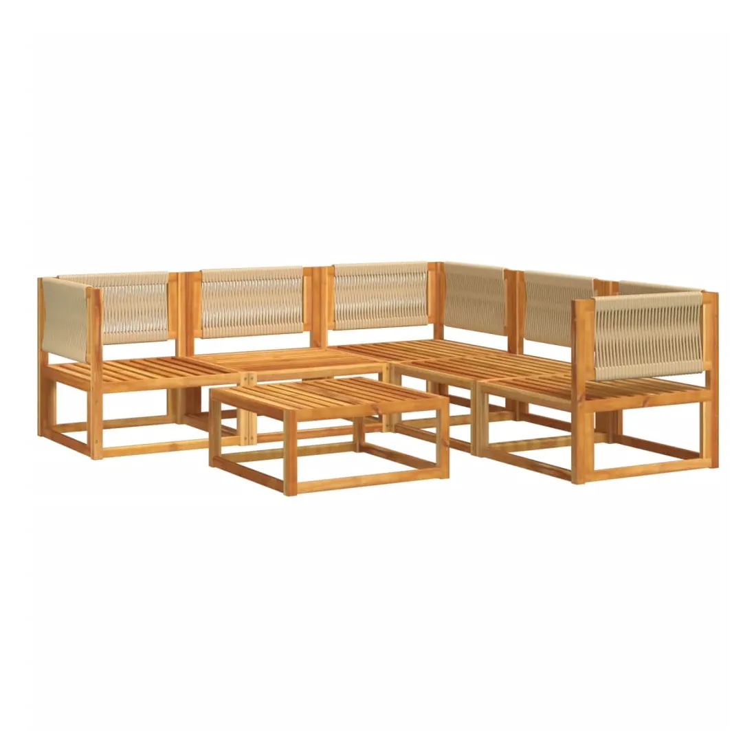 Ensemble de canapés de jardin 6 pièces avec coussins en bois d'acacia et corde