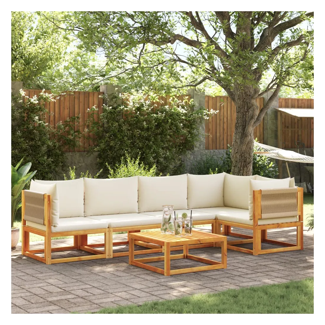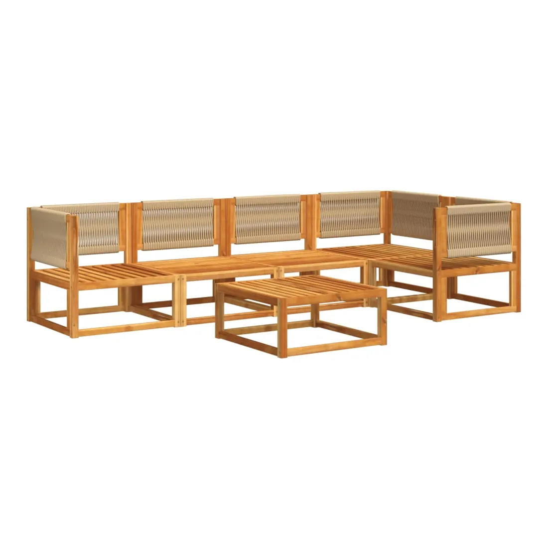 Ensemble de canapés de jardin 6 pièces avec coussins en bois d'acacia et corde