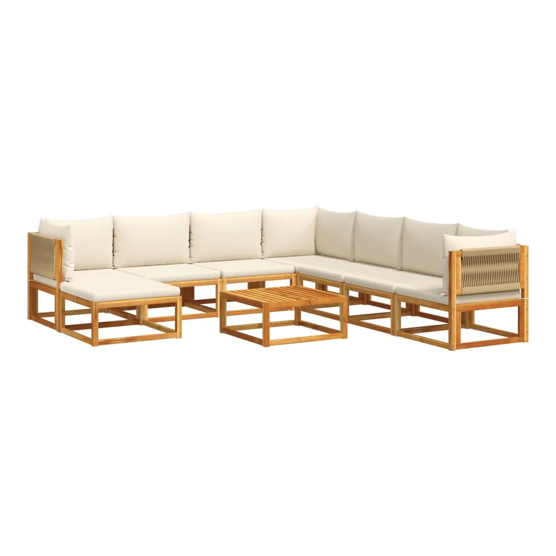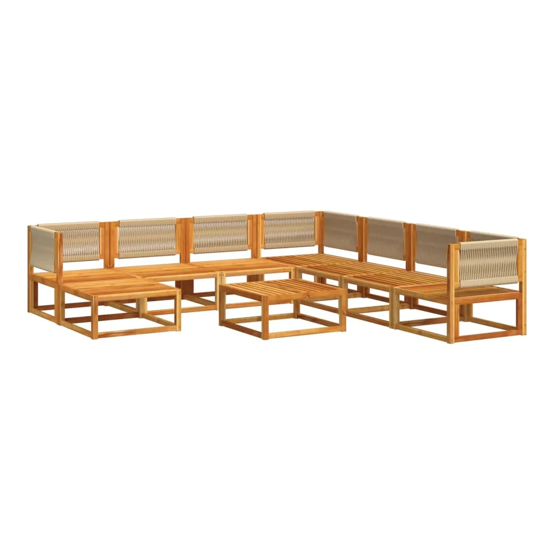 Ensemble de canapés de jardin 9 pièces avec coussins en bois d'acacia et corde