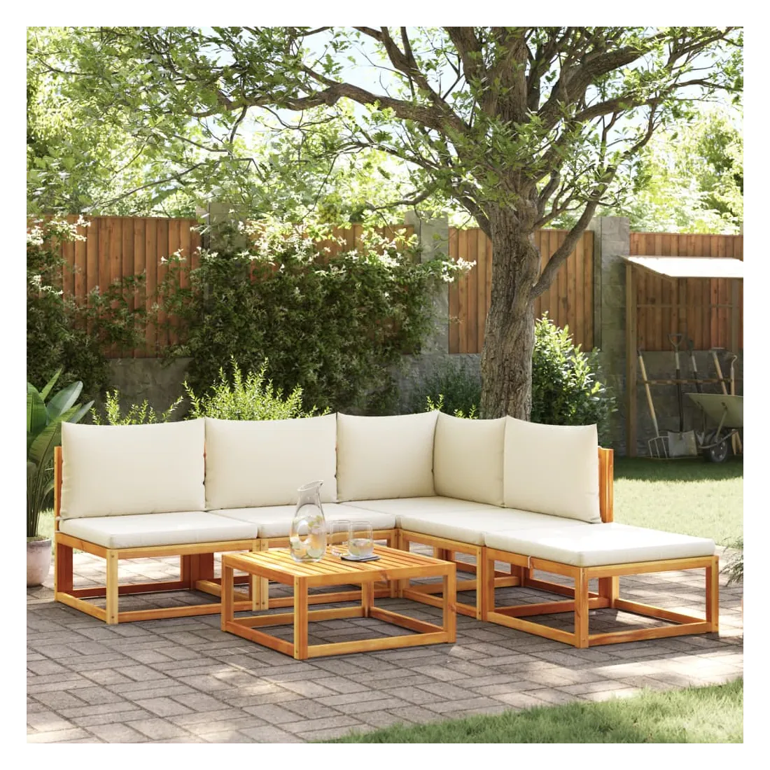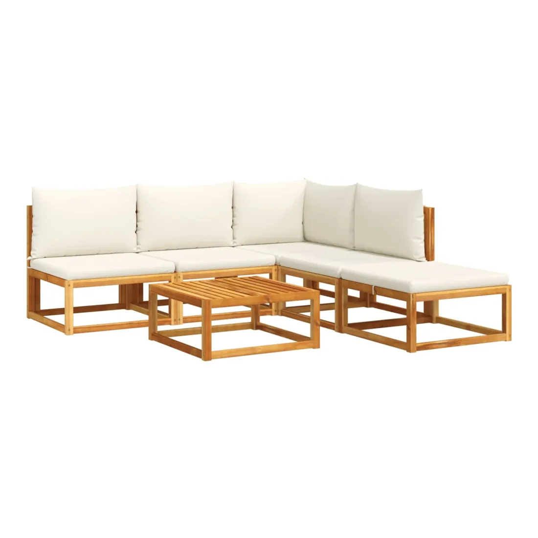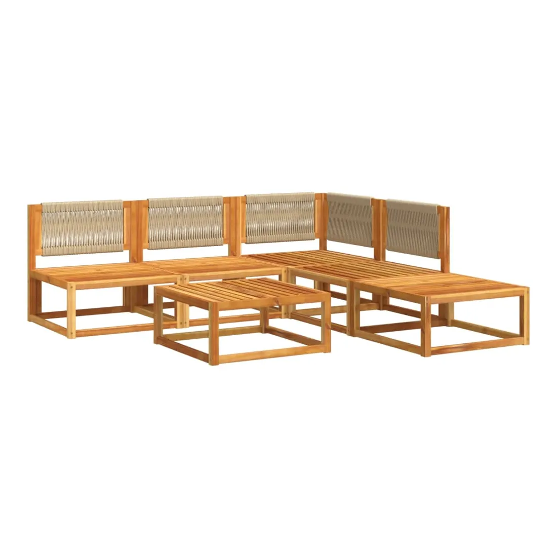 Ensemble de canapés de jardin 6 pièces avec coussins en bois d'acacia et corde