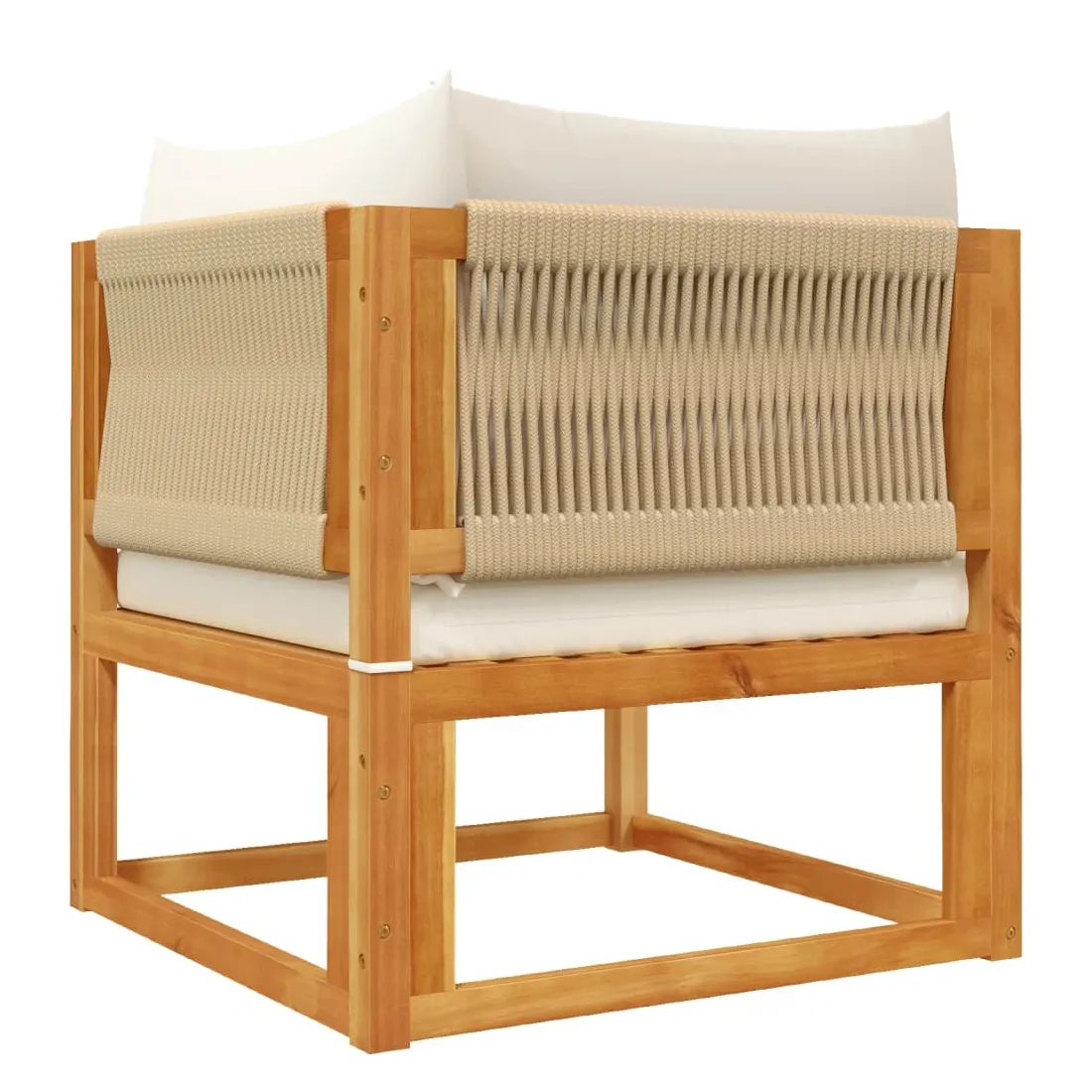 vidaXLCe salon de jardin avec dossiers en corde tressée est le complément idéal à votre jardin, terrasse ou patio. Il offre un espace confortable et accueillant pour discuter en famille et entre amis ou simplement se détendre et profiter du plein air. Dossier tressé élégant : ce canapé de jardin est doté de dossiers en corde finement travaillés, ajoutant une touche sophistiquée à tout espace extérieur.Cadre robuste et stable : le bois d'acacia massif est connu pour sa résistance et sa durabilité. Ses couleurs variées et ses motifs de grain uniques lui confèrent un aspect attrayant. Avec une bonne stabilité et une bonne résistance aux intempéries, il est idéal pour la fabrication de meubles d'intérieur et d'extérieur.Assise confortable : Ce mobilier d'extérieur, doté de coussins épais et rembourrés, offre une assise confortable.Housse amovible et lavable : Ces coussins d'assise sont dotés de housses amovibles pour un lavage et un entretien faciles.Aération optimale et prévention des accumulations d'eau : La conception à lattes favorise une circulation d'air optimale et empêche efficacement l'accumulation d'eau, garantissant un mobilier de jardin sec et confortable.Conception modulaire : Cet ensemble de mobilier d'extérieur a une conception modulaire, ce qui le rend entièrement flexible et facile à déplacer, vous permettant ainsi de créer un aménagement de mobilier d'extérieur personnalisé. Bon à savoir :Pour que votre mobilier d'extérieur reste beau, nous vous recommandons de le protéger avec une housse imperméable.