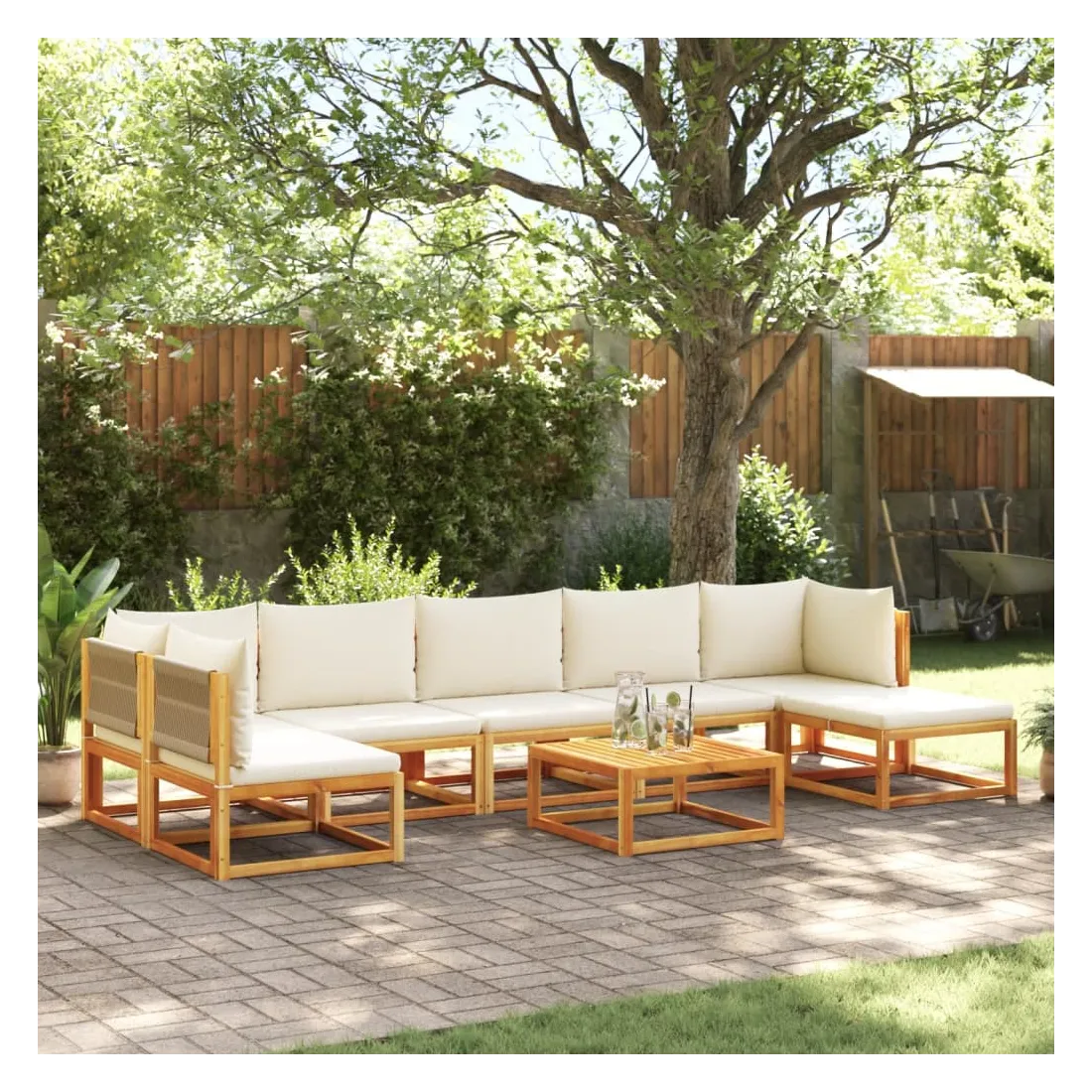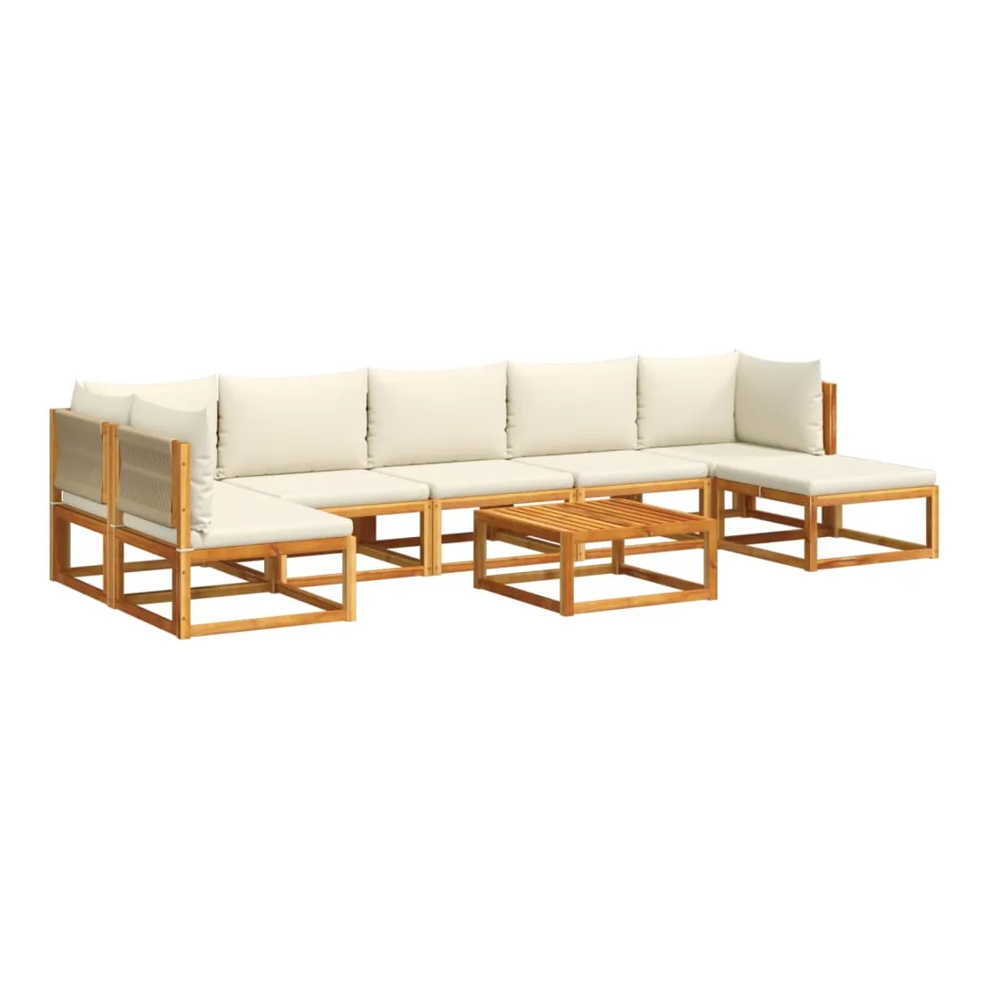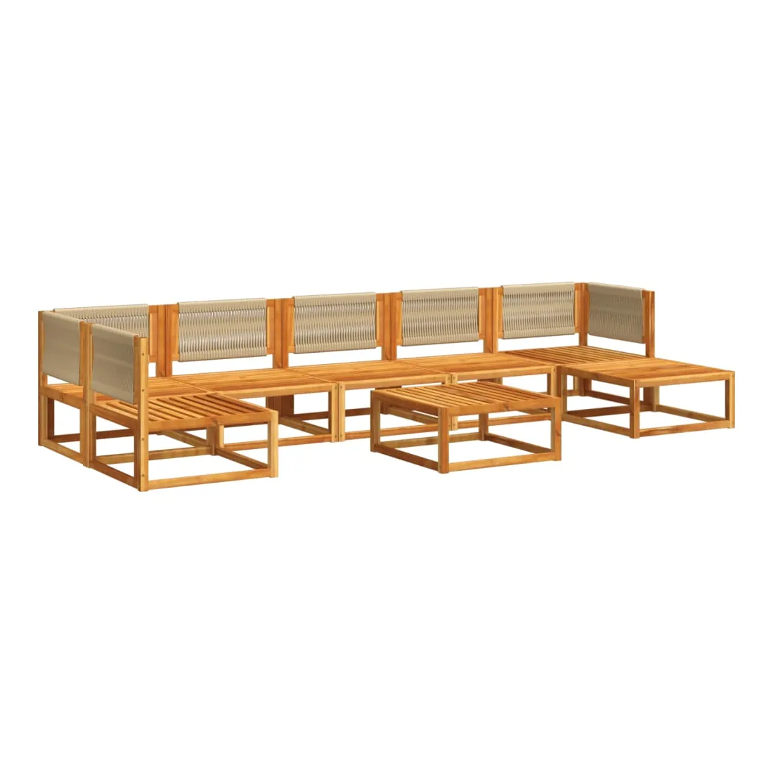 Ensemble de canapés de jardin 8 pièces avec coussins en bois d'acacia et corde